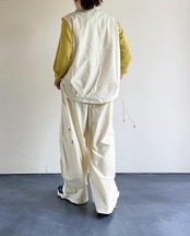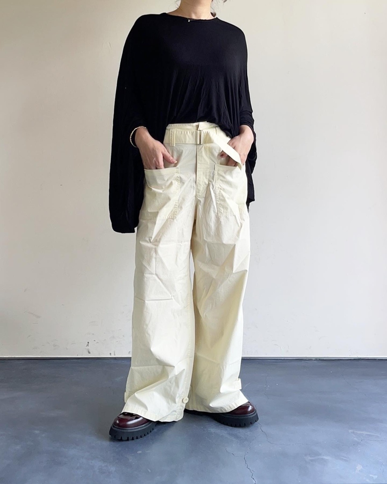 ハリのあるタイプライター生地を使用したイージーパンツ。