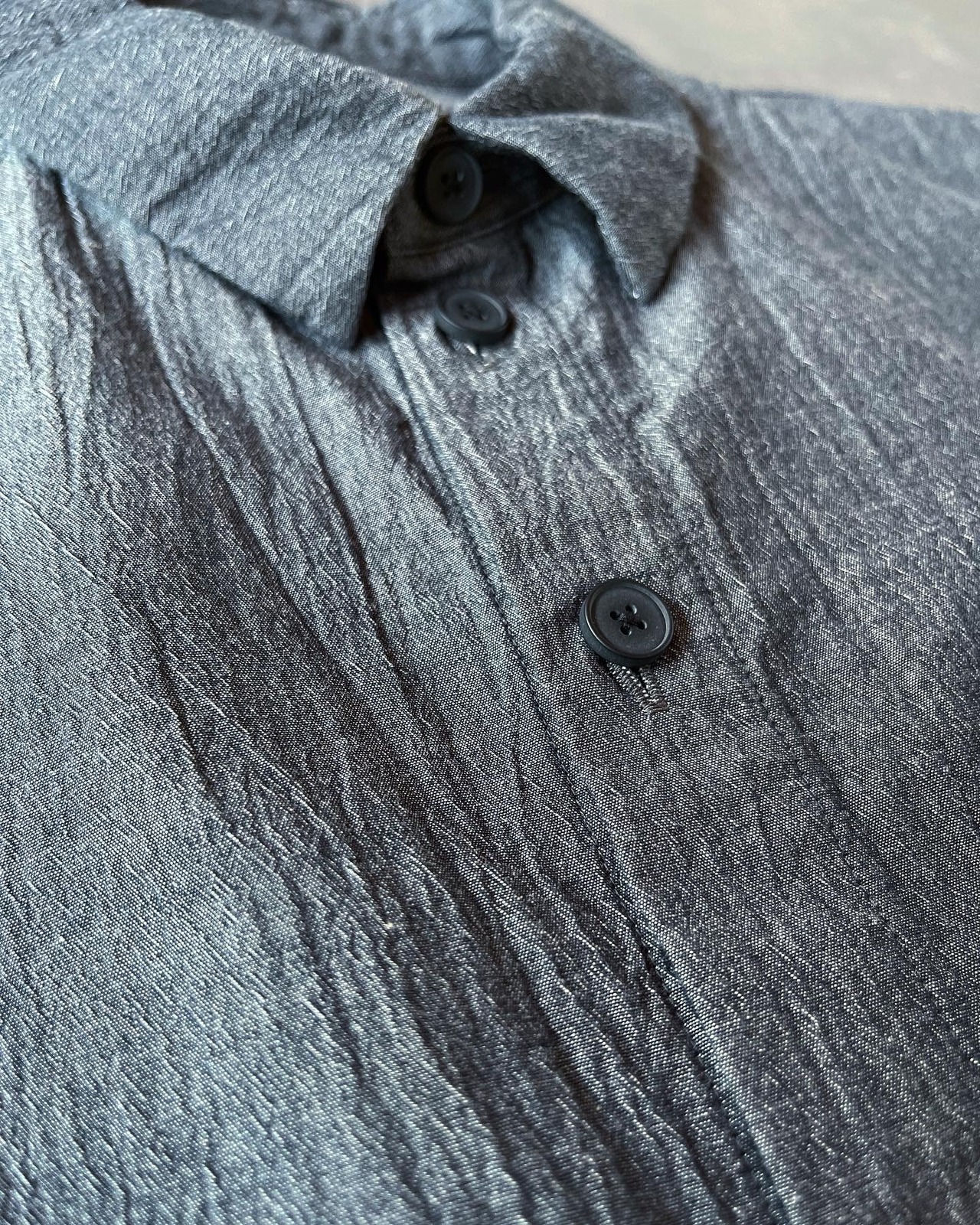 整理加工をせずに生機の状態から直接水でもみ洗いしタンブラー乾燥をすることで粗い質感と皺感を強く出した仕上げにしています。