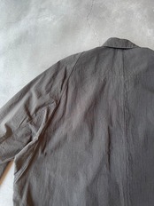 この生地の特徴として、生折れ皺や雷皺といったアイロンをかけても取れない強い皺やアタリが生地全体に現れます。