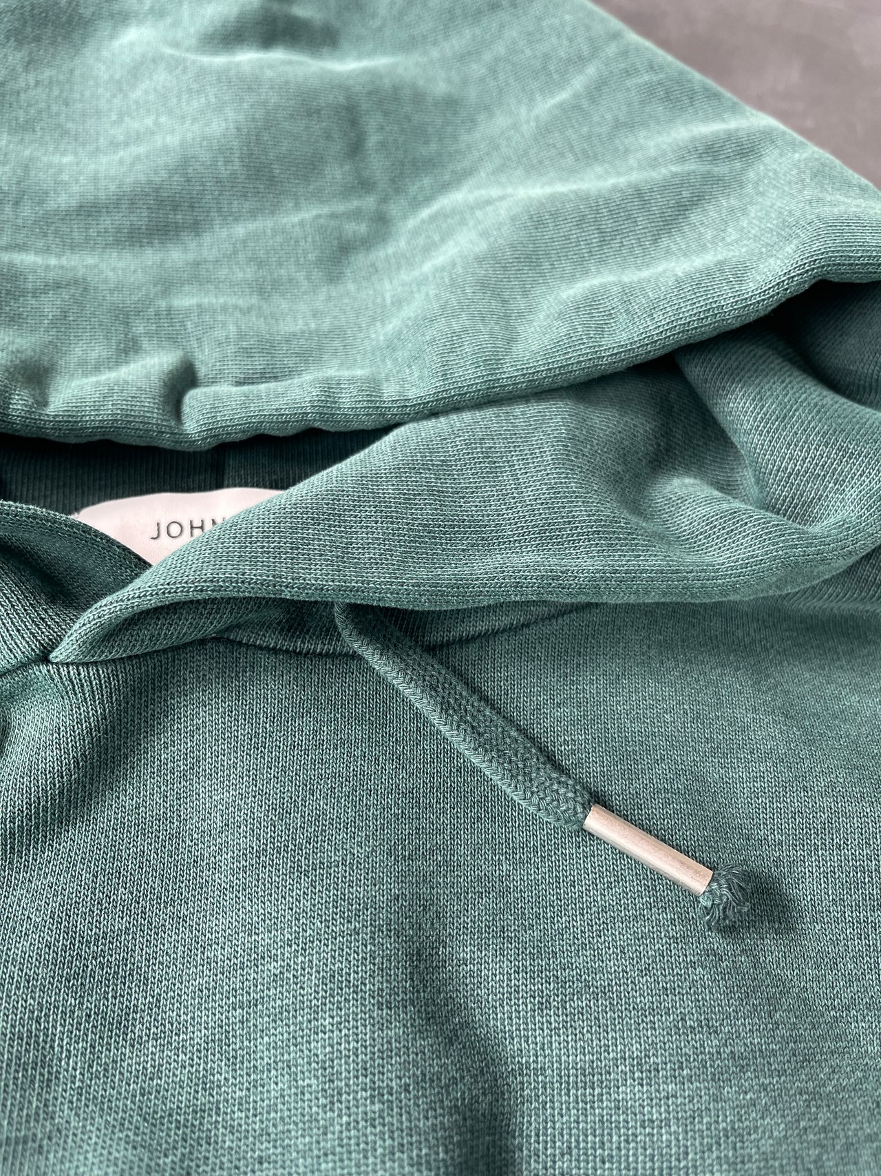 ヘビーオンスの裏毛生地を使用したプルオーバーパーカー。