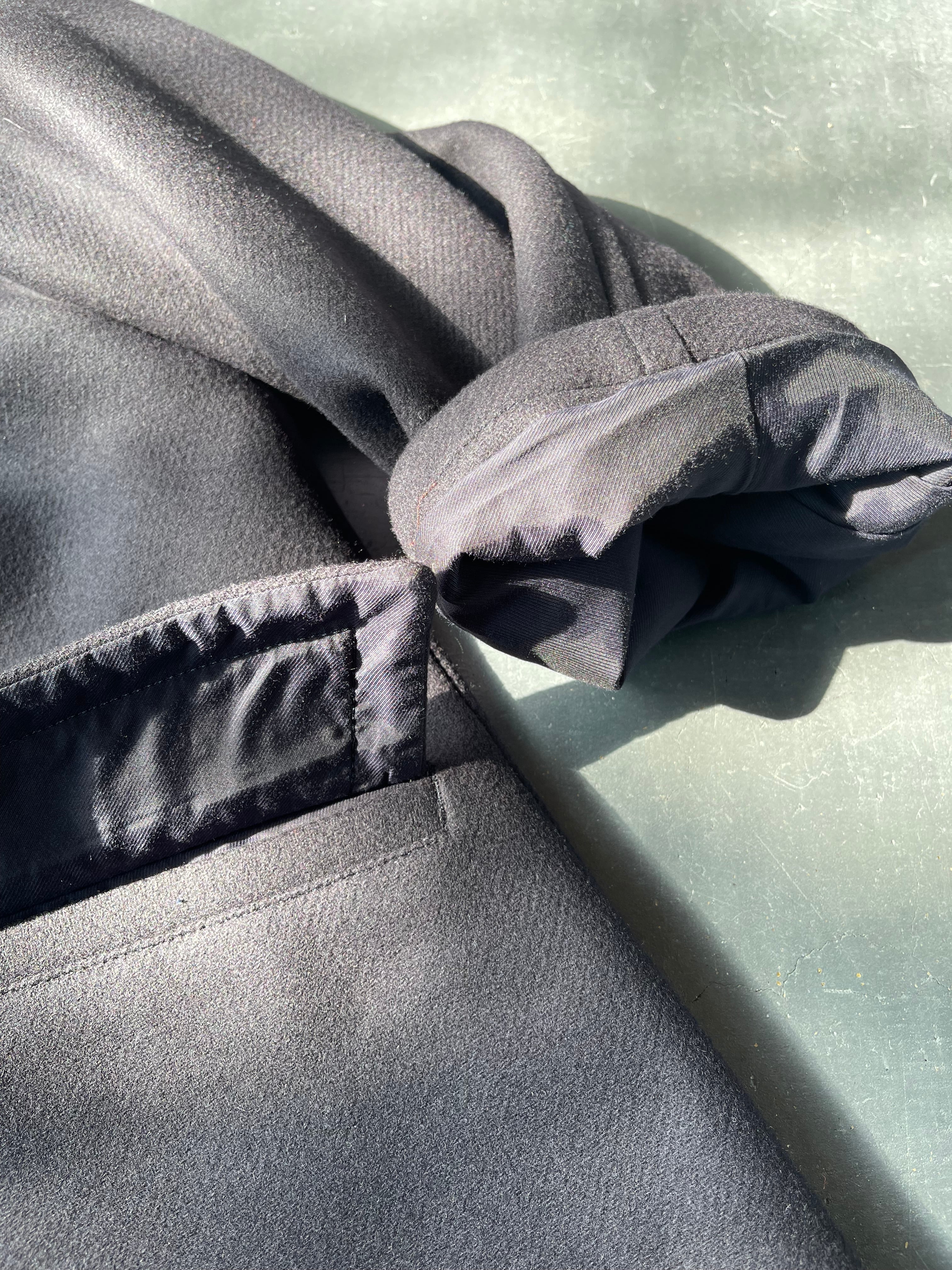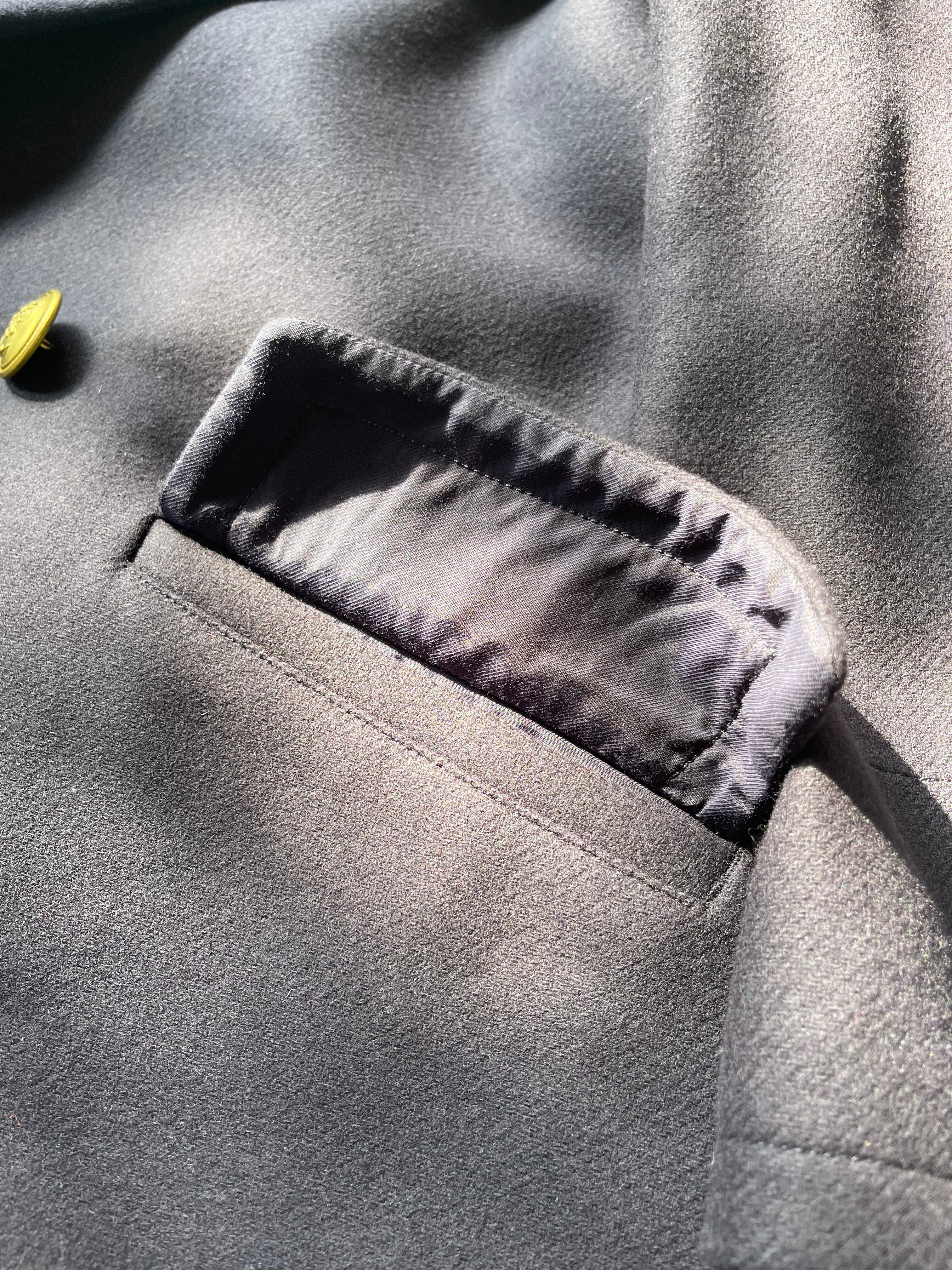 温性を持つ。押えが効いた美しい艶と滑らかなタッチの Super 130s ファインウール原料にきめ細やかな起毛加工を施すことで生まれる素材の膨らみと非常に軽い仕上がりが最大の特徴である。