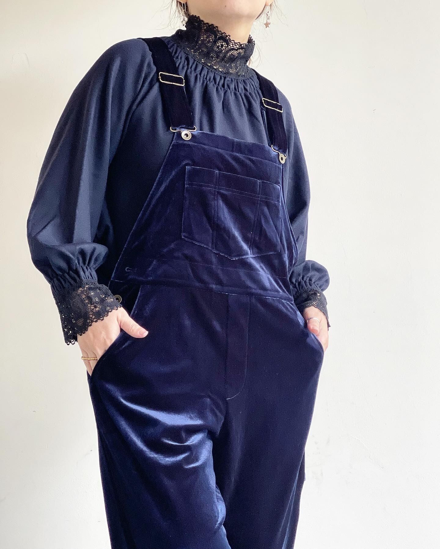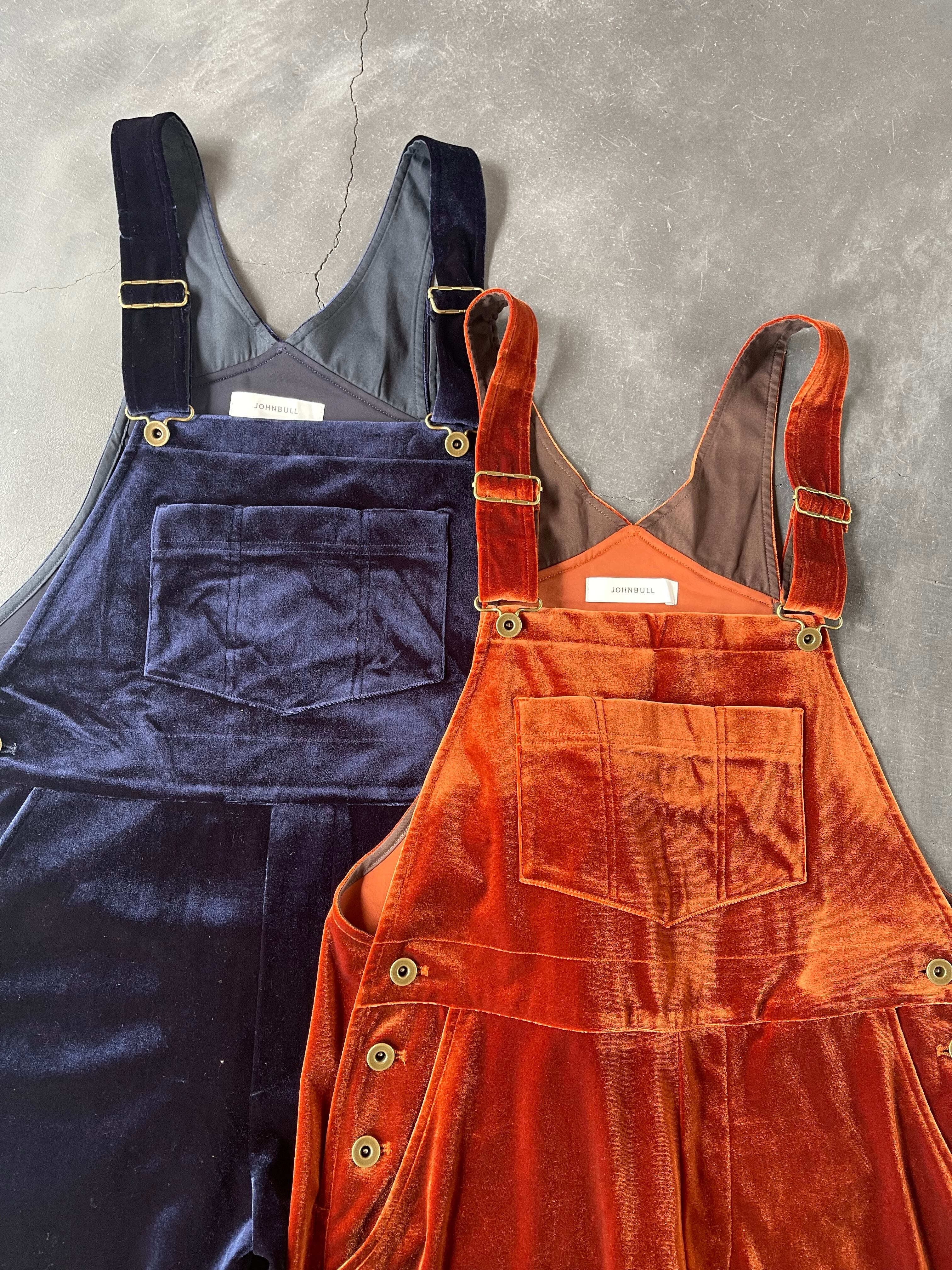 ベロア特有のツヤ感と落ち感で女性らしいオーバーオールスタイルをお楽しみ頂けます。