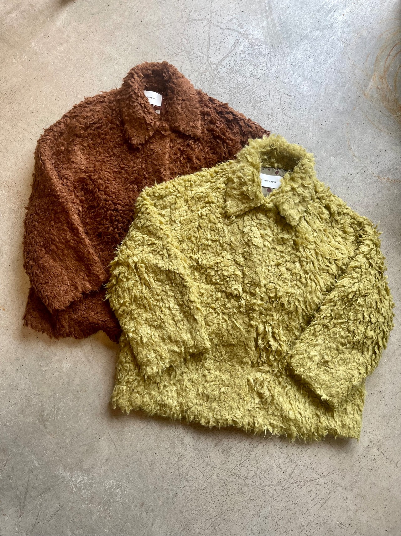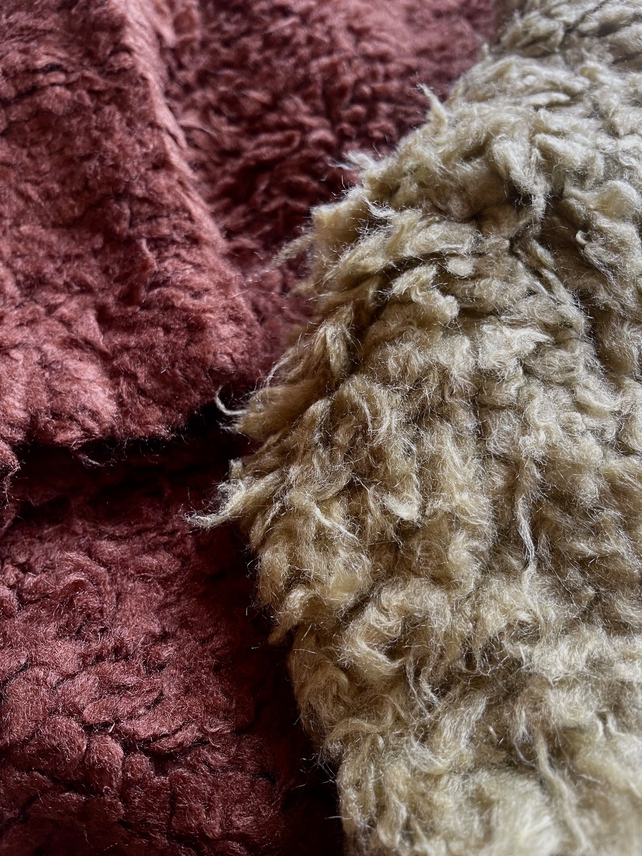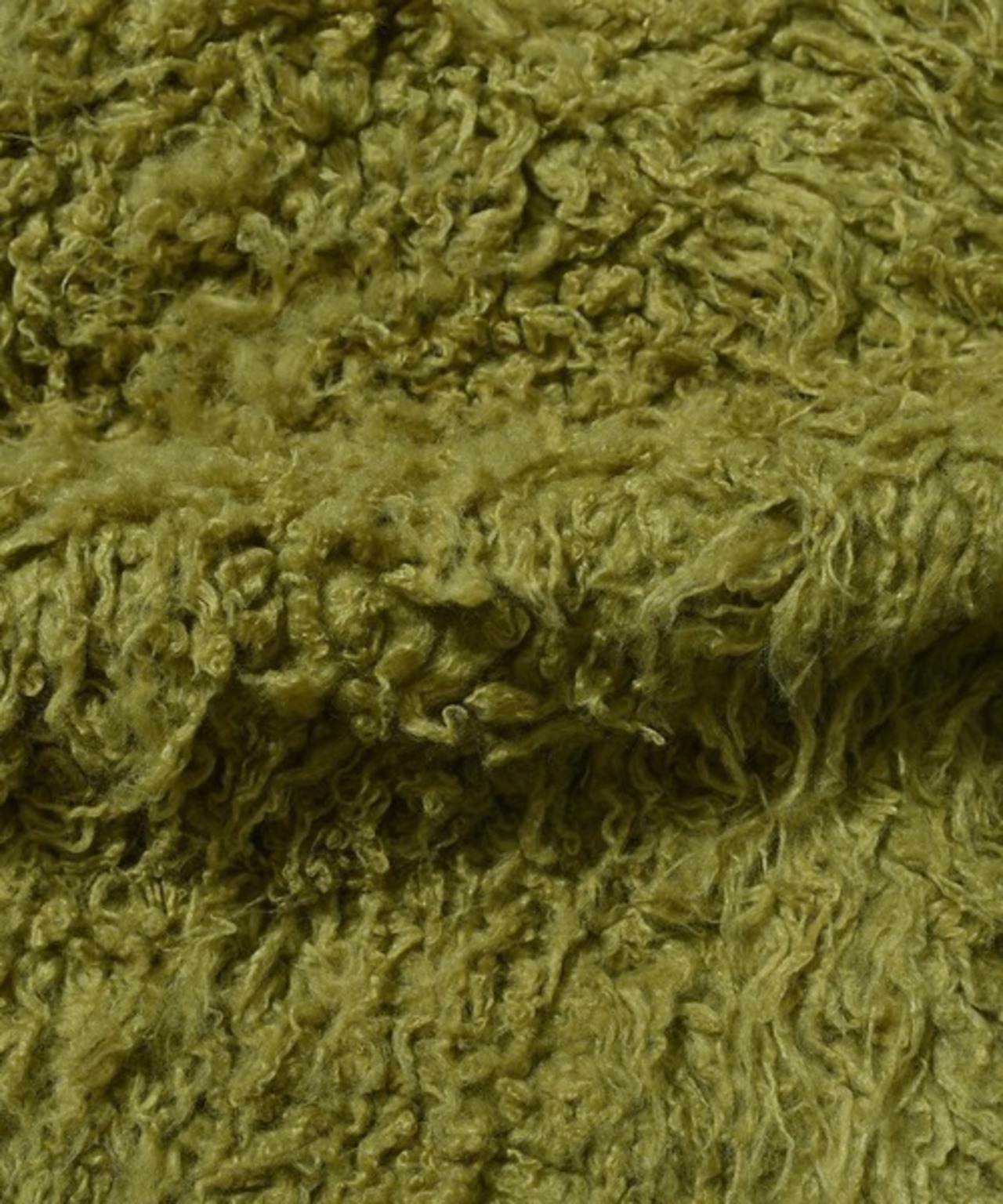 スタンダードプードルを思わせるボリューム感のあるボアコート。