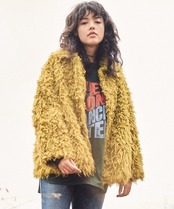 思わず触りたくなるボアの毛並みがカジュアルな雰囲気ながら、コーディネートに華やかさをプラスしてくれます。
