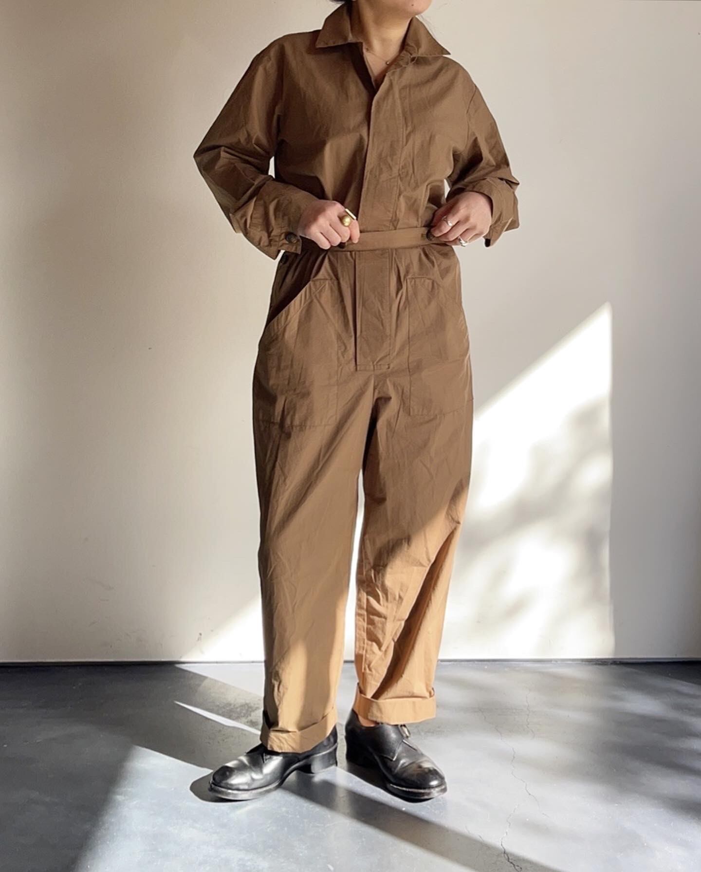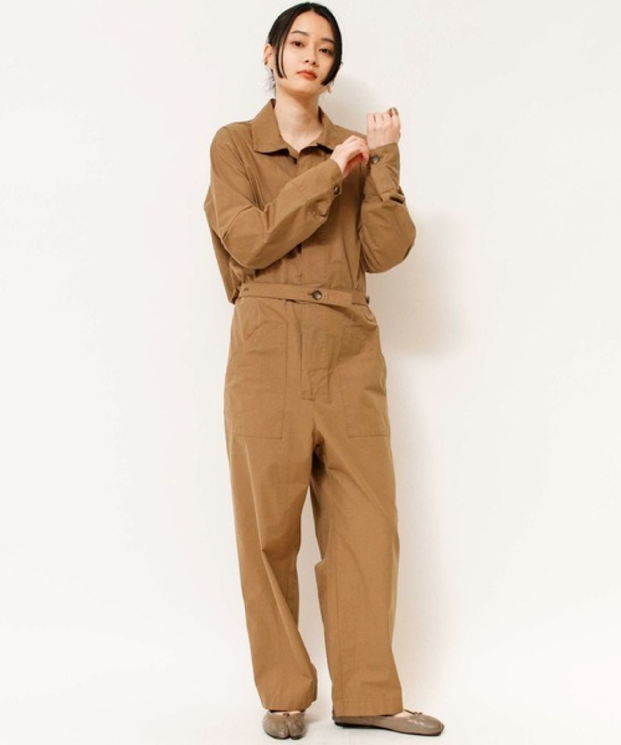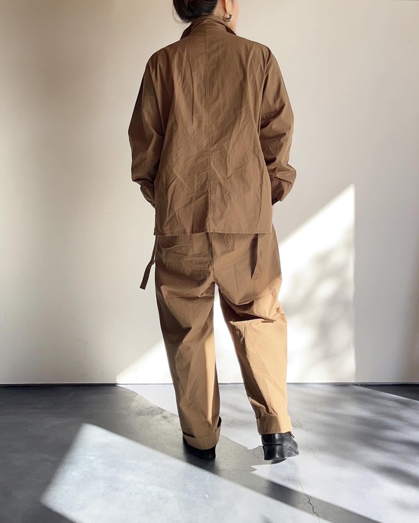 バックウエストにゴムを配すことで、裾をインして頂くとつなぎのような見え方に、アウトで着用頂くとシャツを合わせているような印象に。