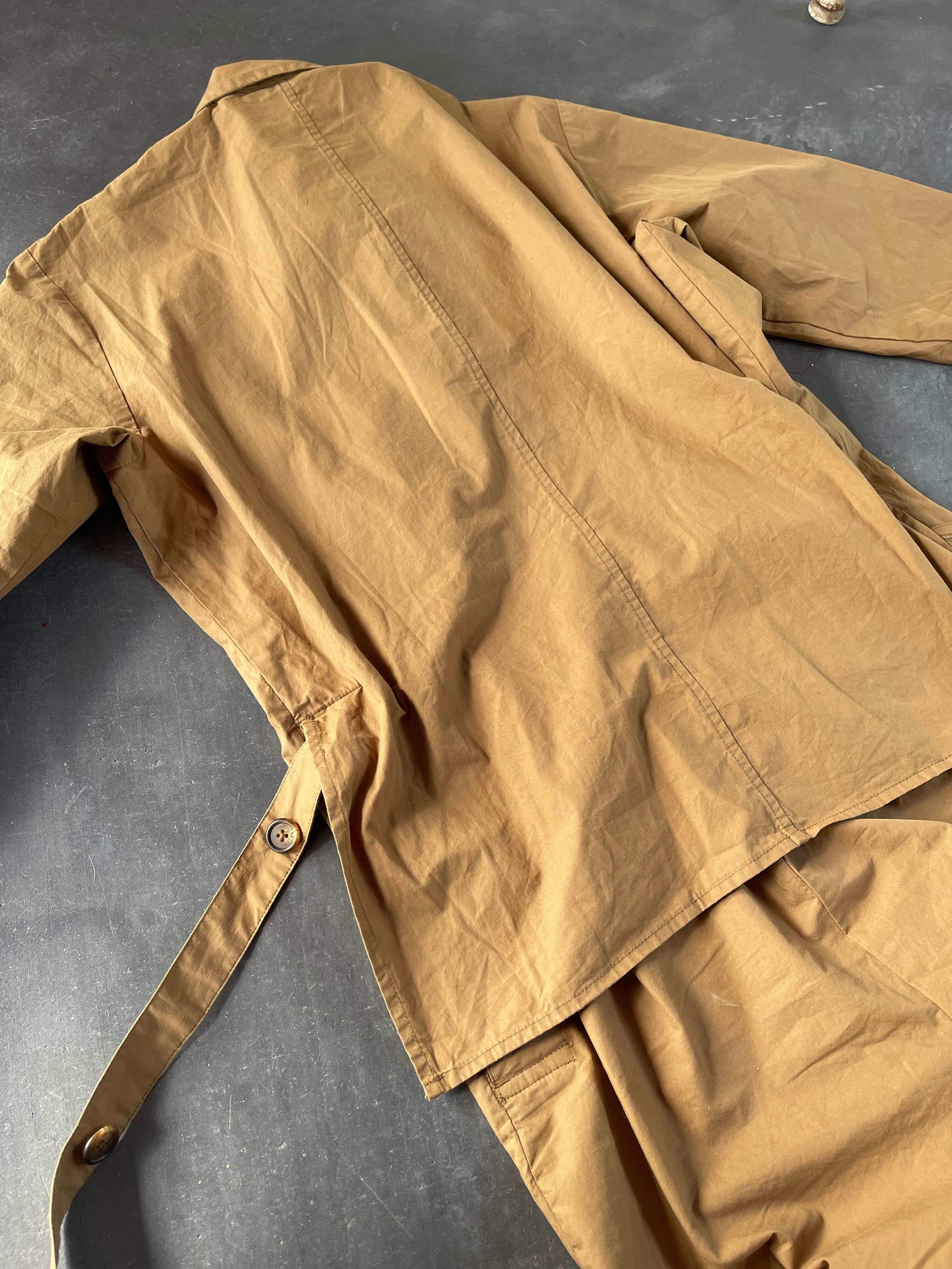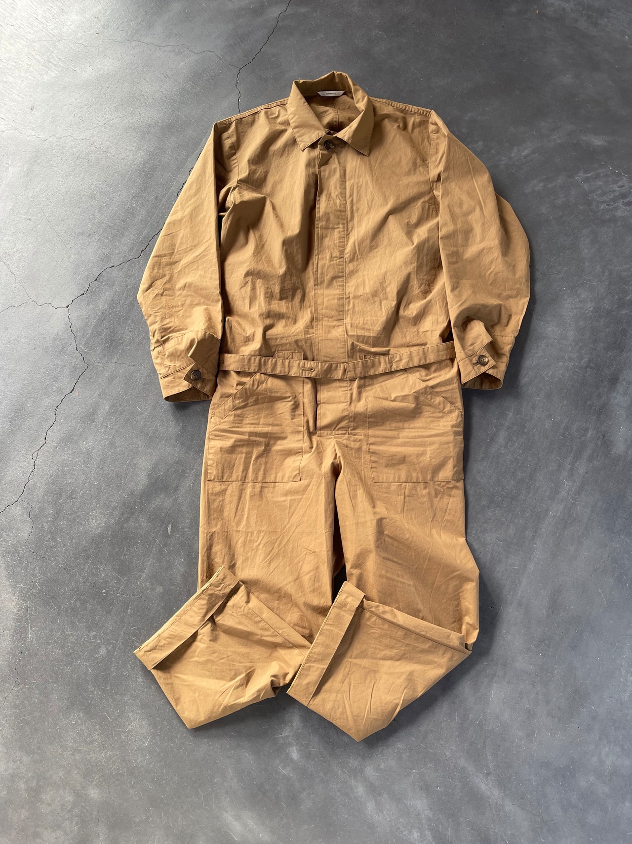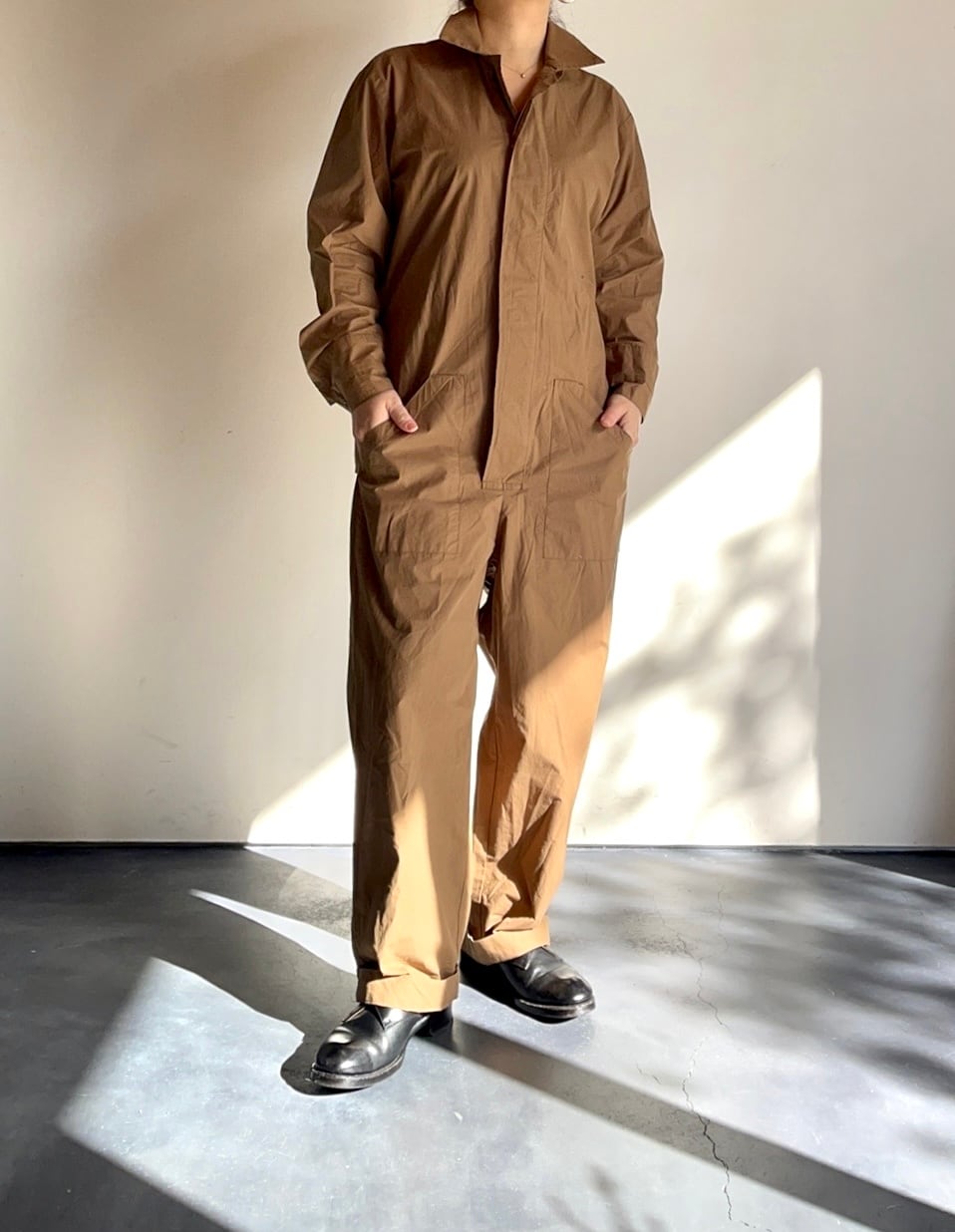 バックウエストにゴムを配すことで、裾をインして頂くとつなぎのような見え方に、アウトで着用頂くとシャツを合わせているような印象に。