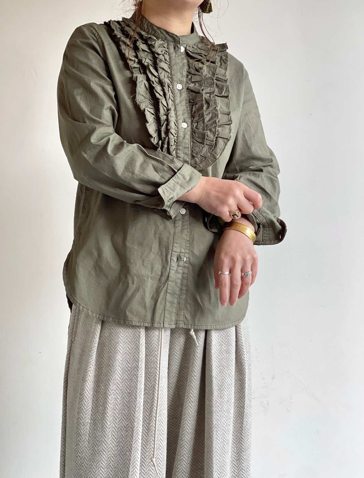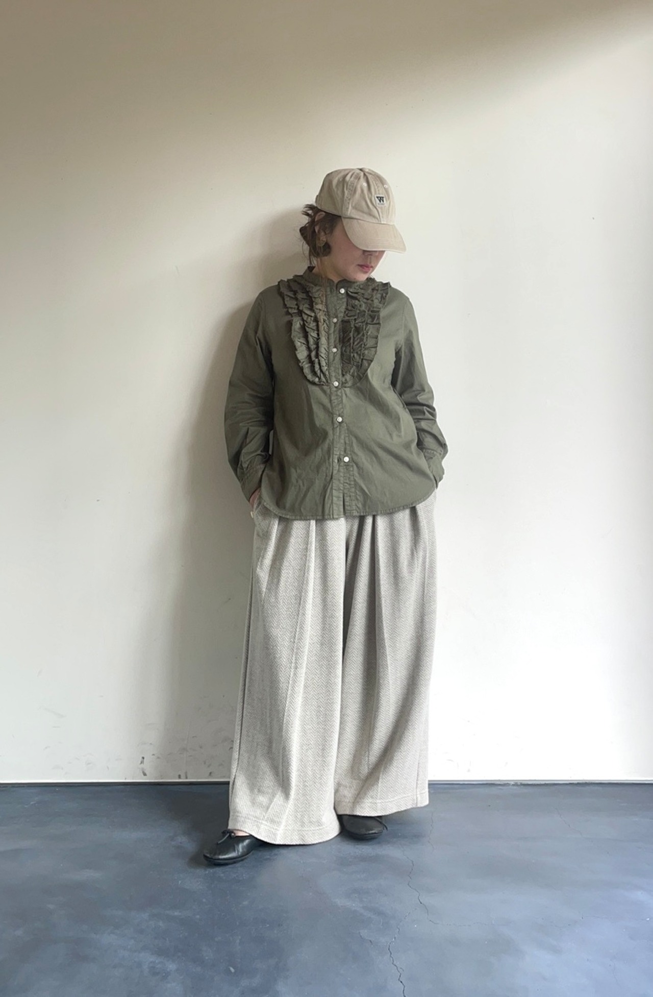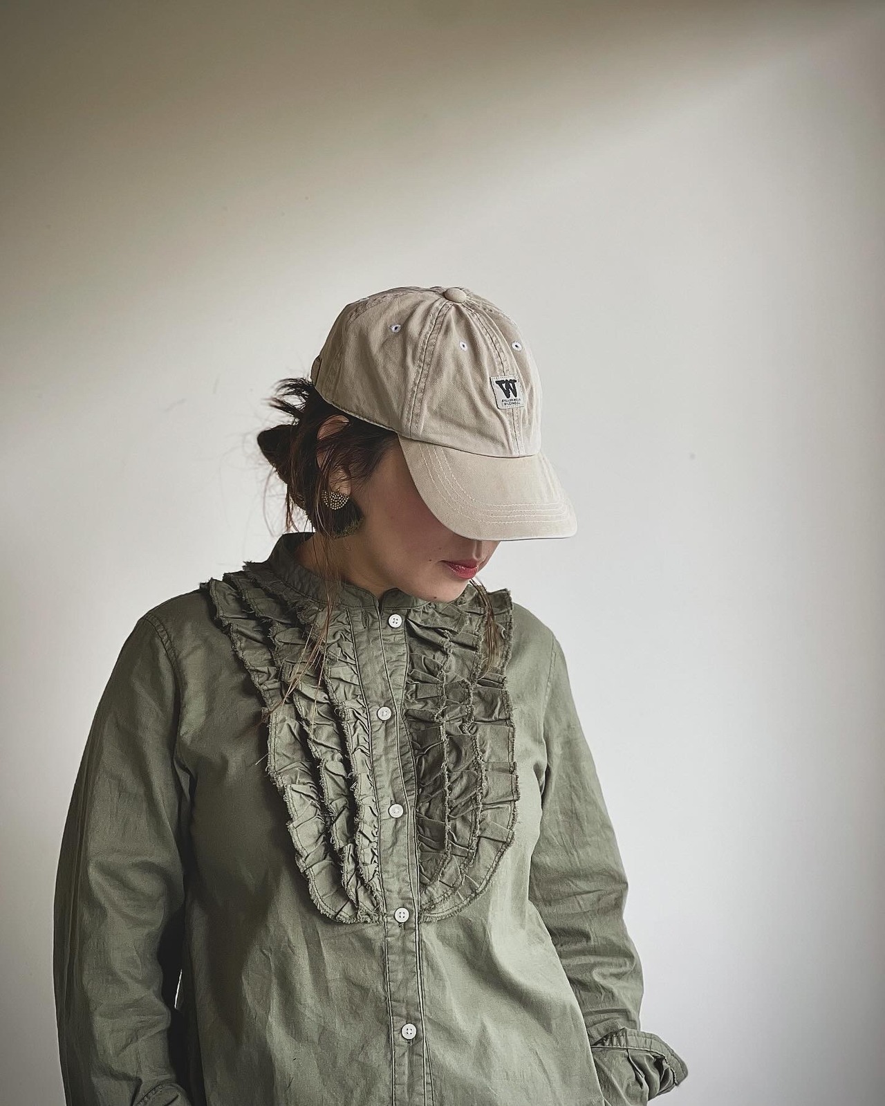 古着のようにふんだんにフリルをあしらったデザインは、ミリタリーアイテムとも好相性です。