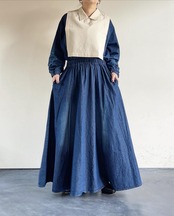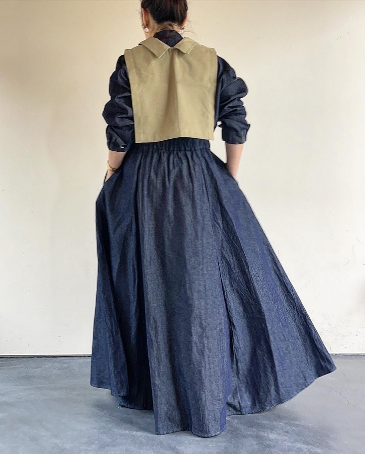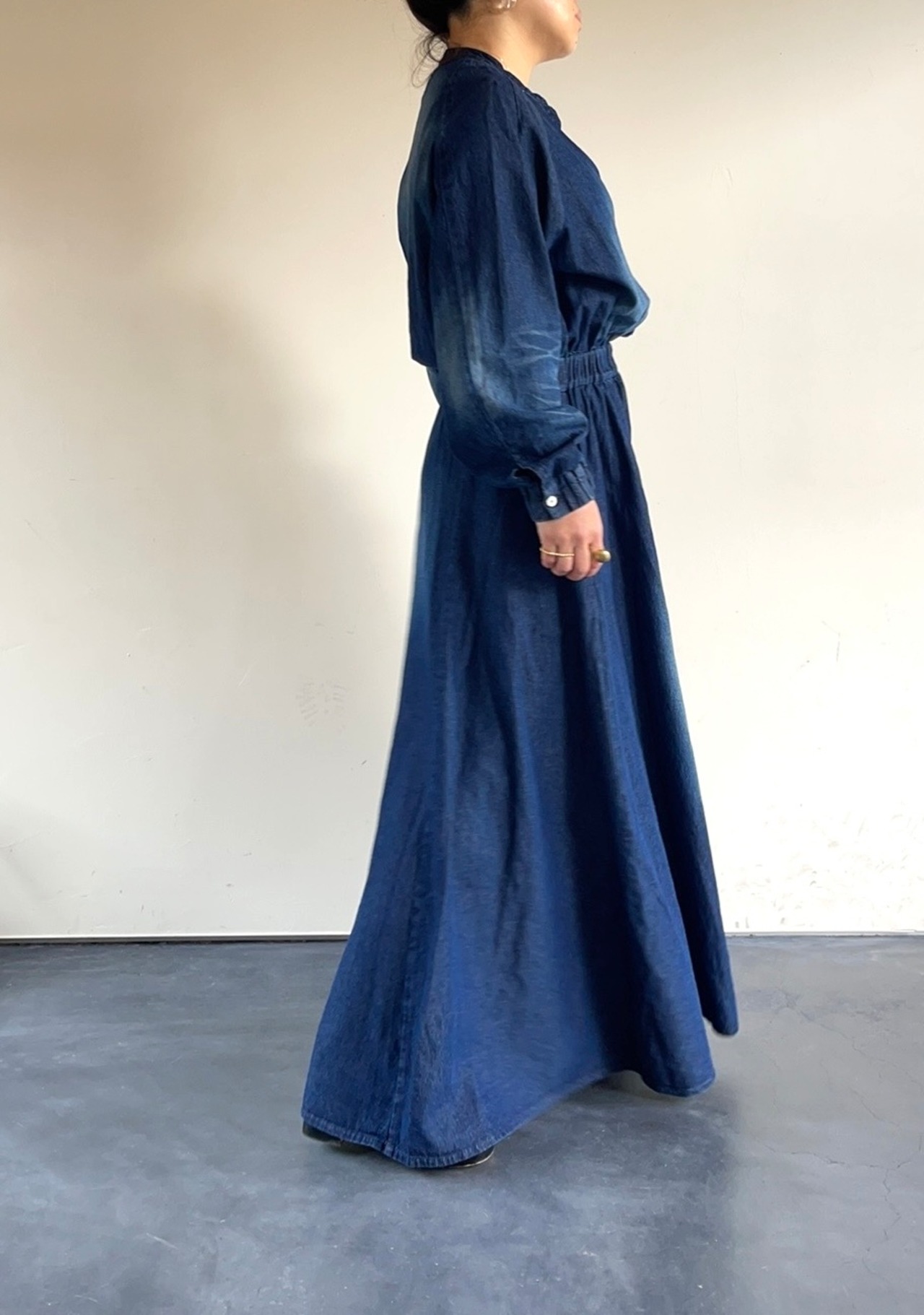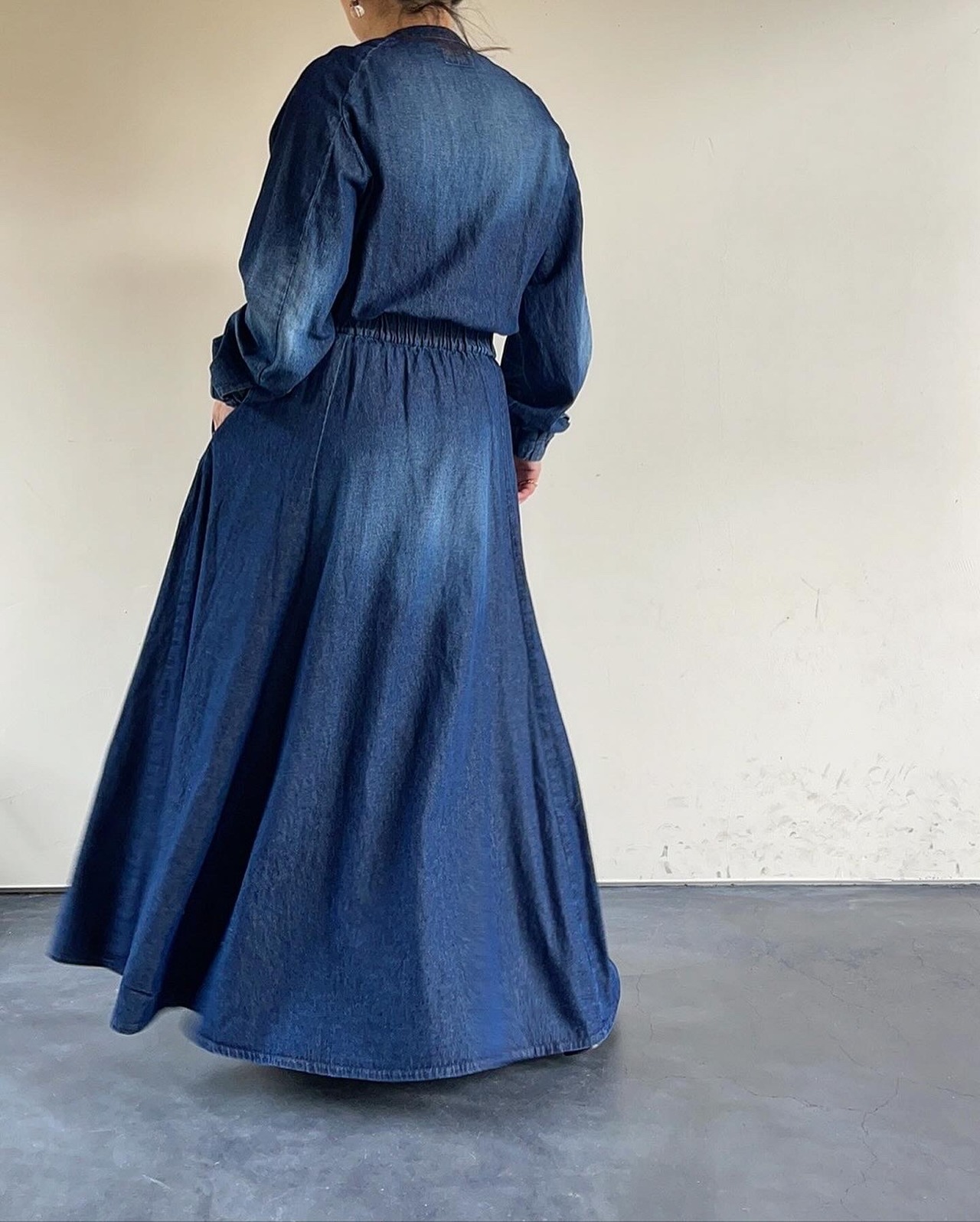 一枚で様になるのはもちろん、デニムのカジュアル感に合うようラグランスリーブにし、プラス女性らしさを取り入れたいと思い、生地をたっぷりと使用したフレアワンピースに。