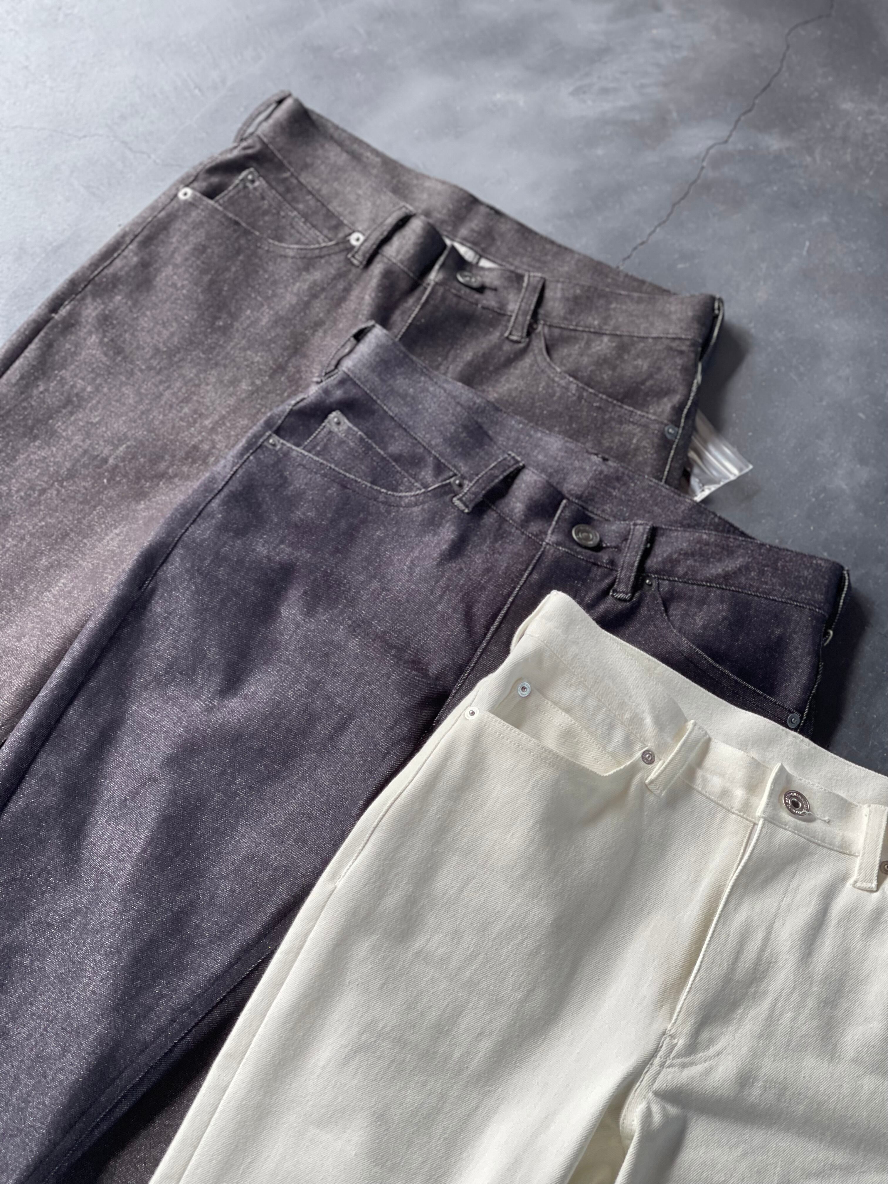 インディゴ染料を使用せず反応染めすることで優れた堅牢度も併せ持つ。インディゴ未使用のストレッチ素材でありながら、まるで綿100%の本格派デニムの表情を両立させたジャパンメイドならではの130zデニム。表示に従い手洗い可。