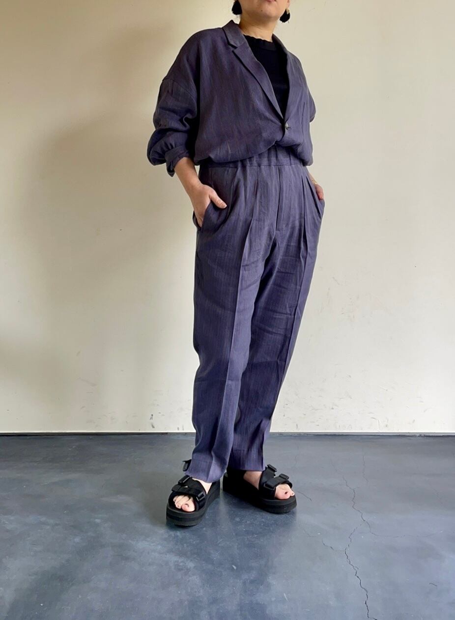 Robes&confections Stretch Linen Herringbone Stripe Tapered Easy Pants