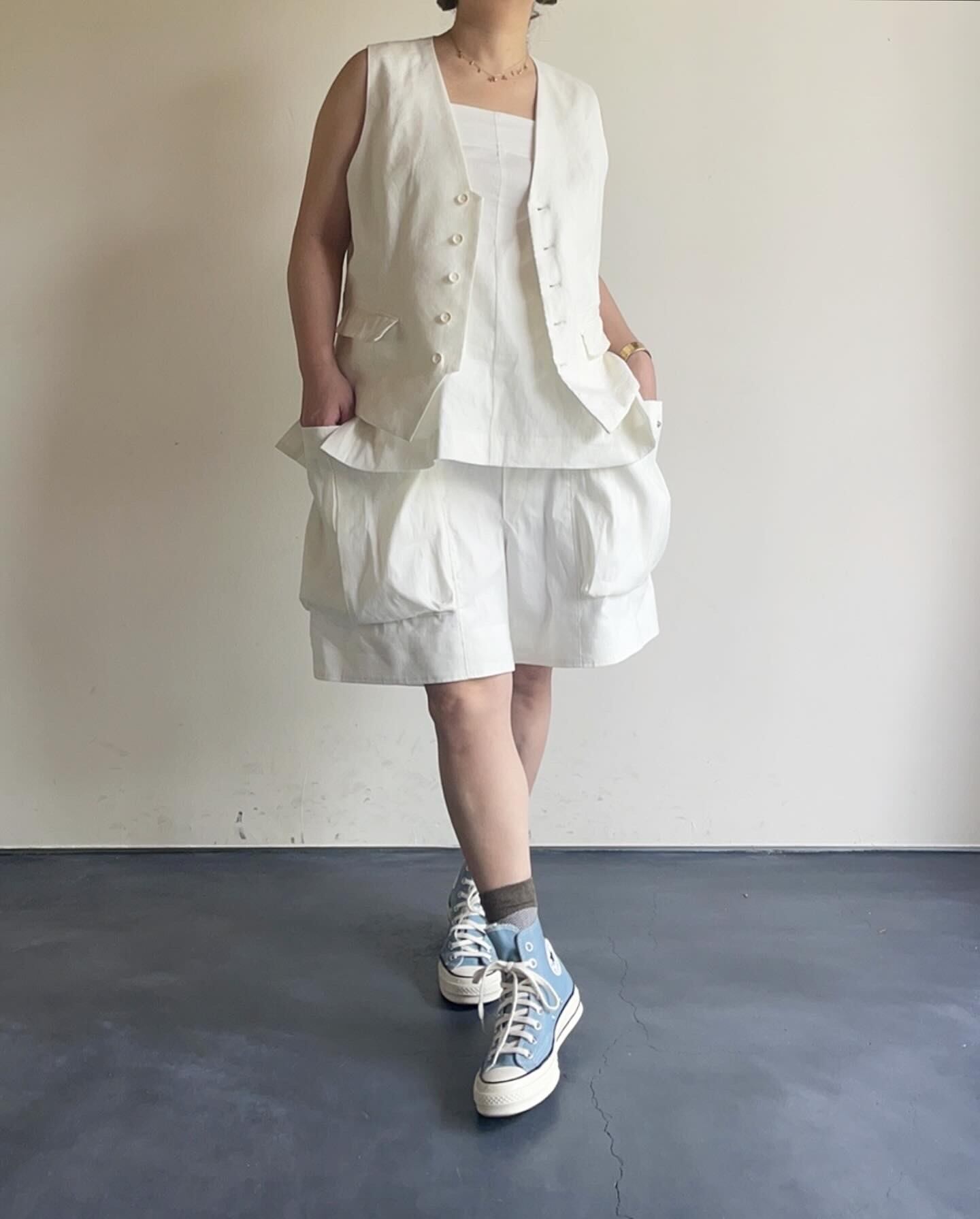 Robes&confections Hybrid Stretch Linen Cargo Short Pants WHITE