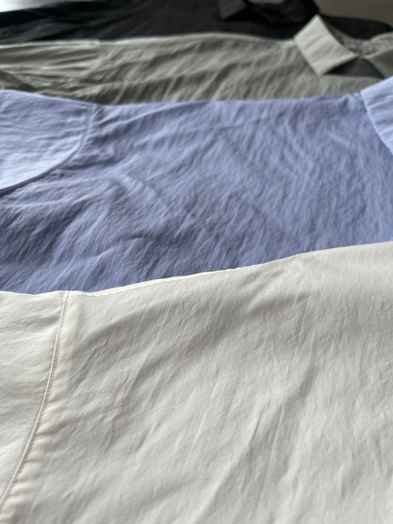 縦横の糸の縮率の関係で縦方向に皺が寄りとても風合いのある素材です。