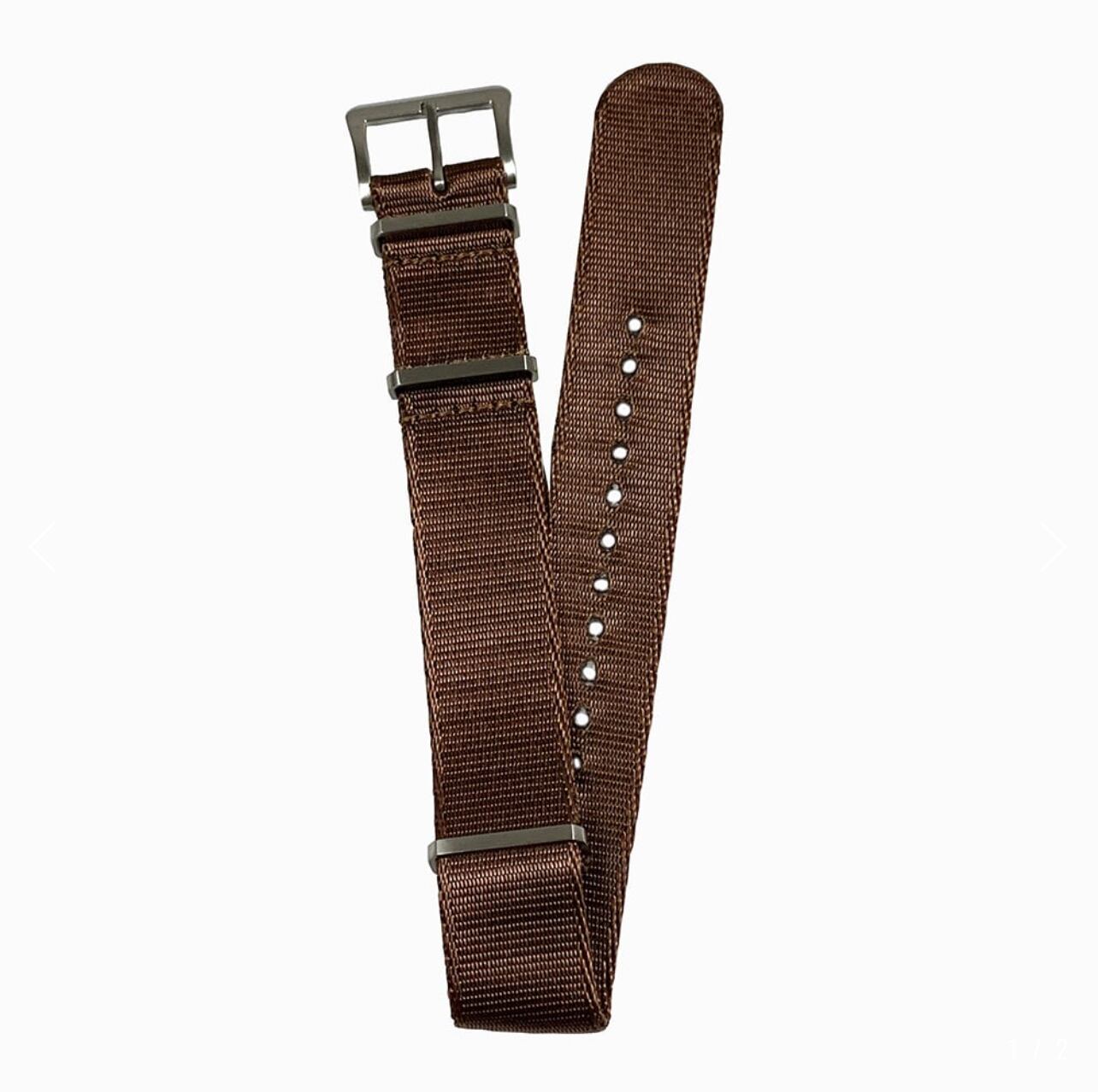 シートベルト素材の高級ナイロン G10 / NATOタイプ ブラウン色 ストラップです。表面はシルク調で光沢が有ります。