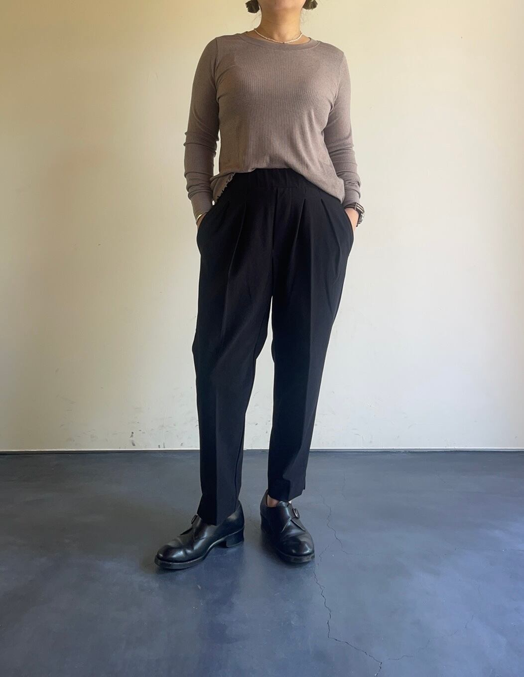 履き心地はほぼジャージー、シワになりにくく、かつ綺麗なシルエットで、カジュアルにもフォーマルにもスタイリングできるローブス定番の神パンツです。
