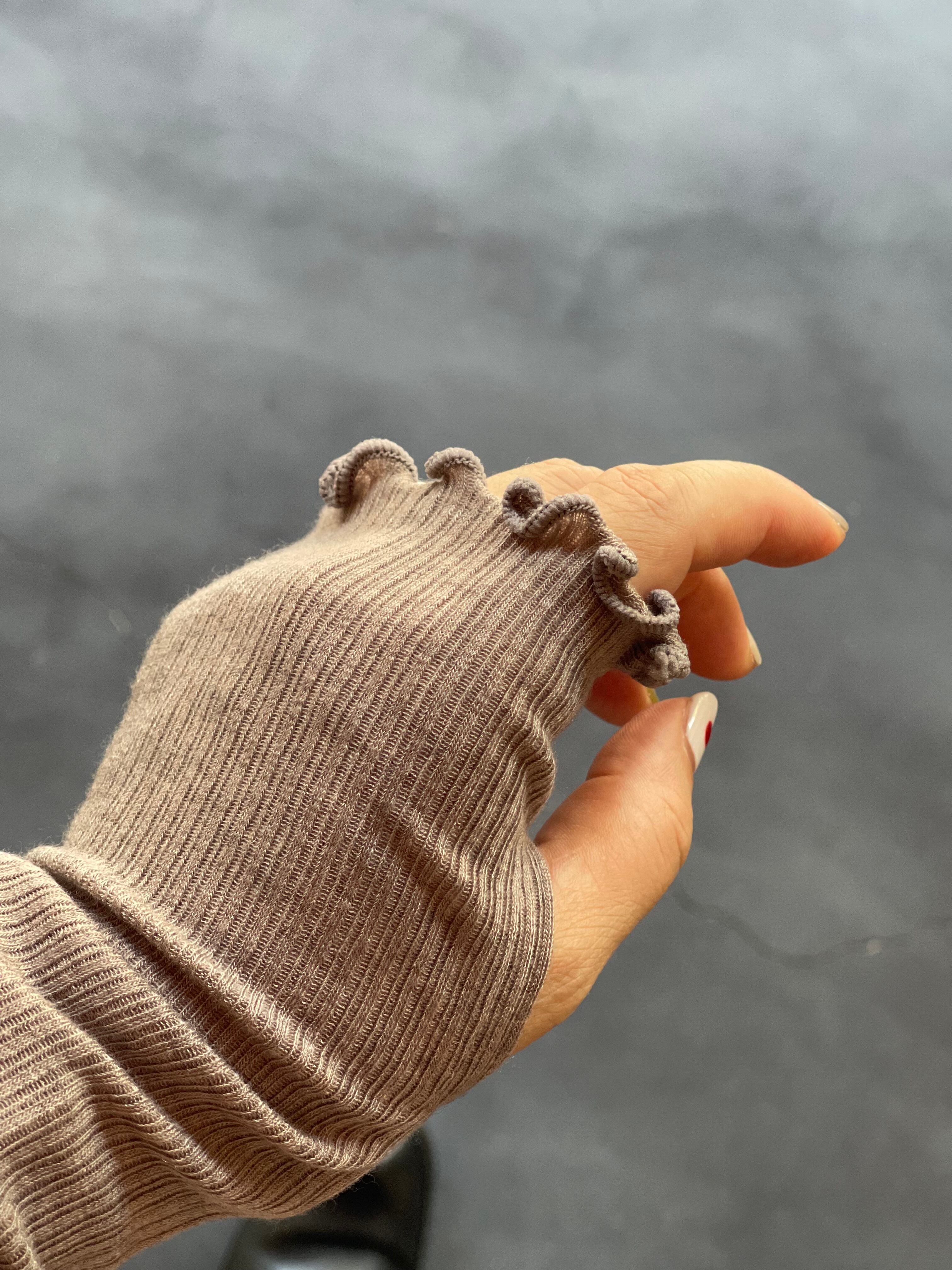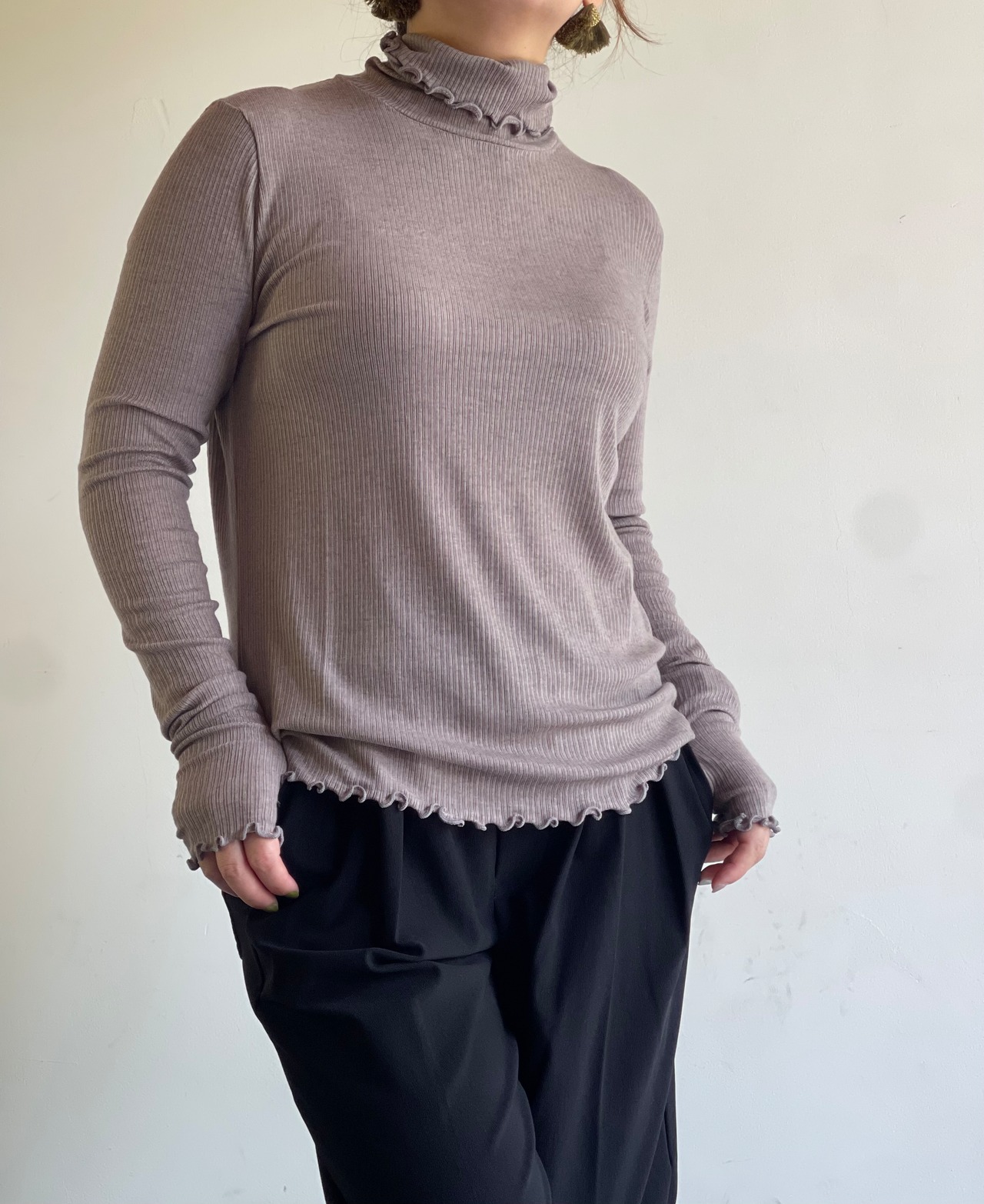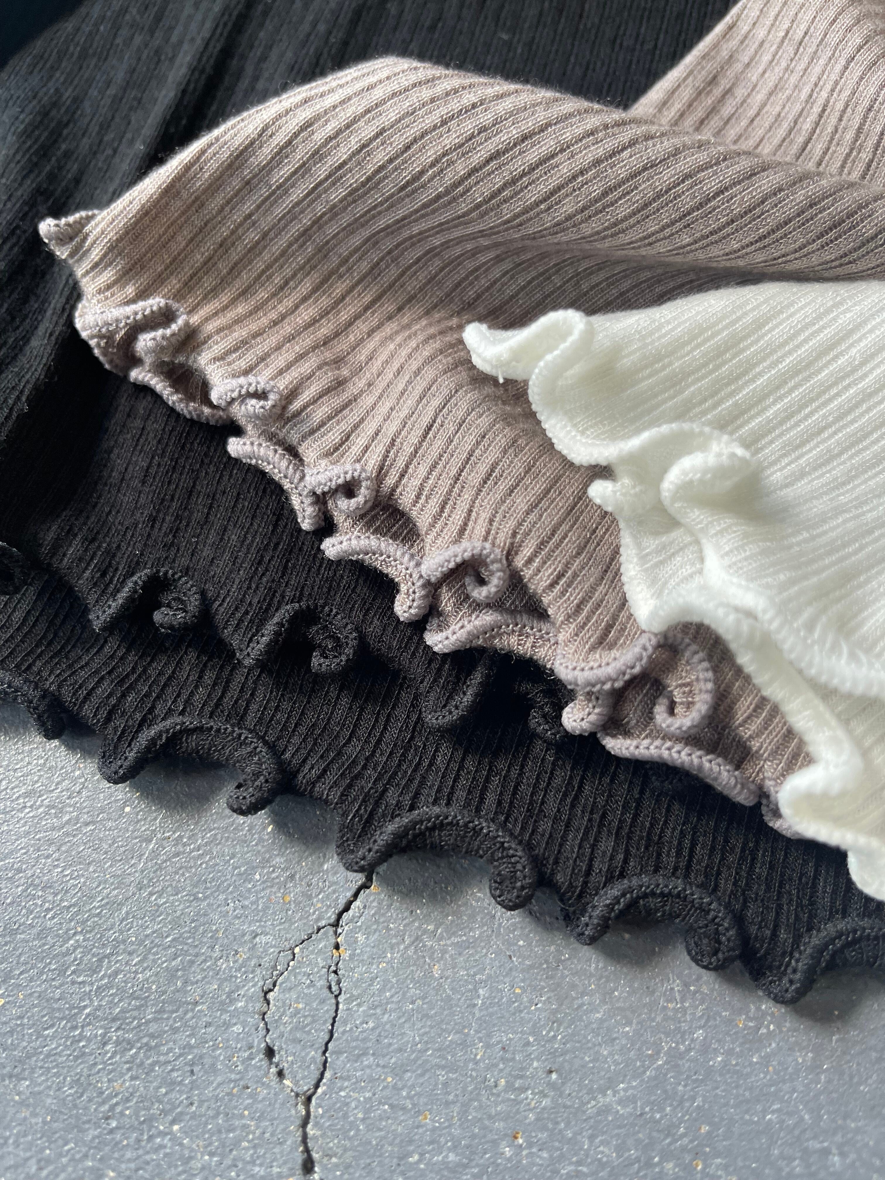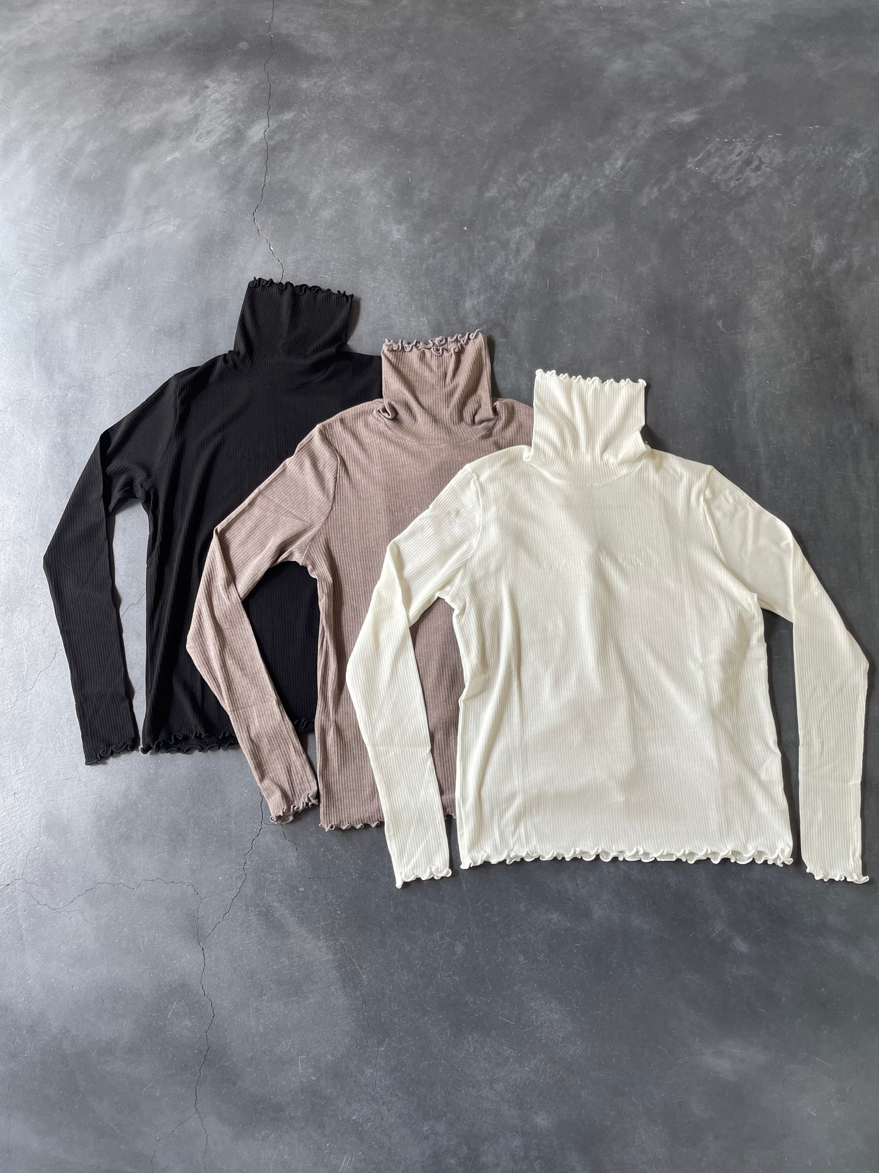 ユーカリ(木材)を特殊な溶剤で溶かして作られる再生繊維リヨセルにカシミアとシルクをブレンドすることで、サスティナビリティーと極上の肌触り双方実現したオリジナル模様の針抜きリブのインナーシリーズです。