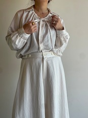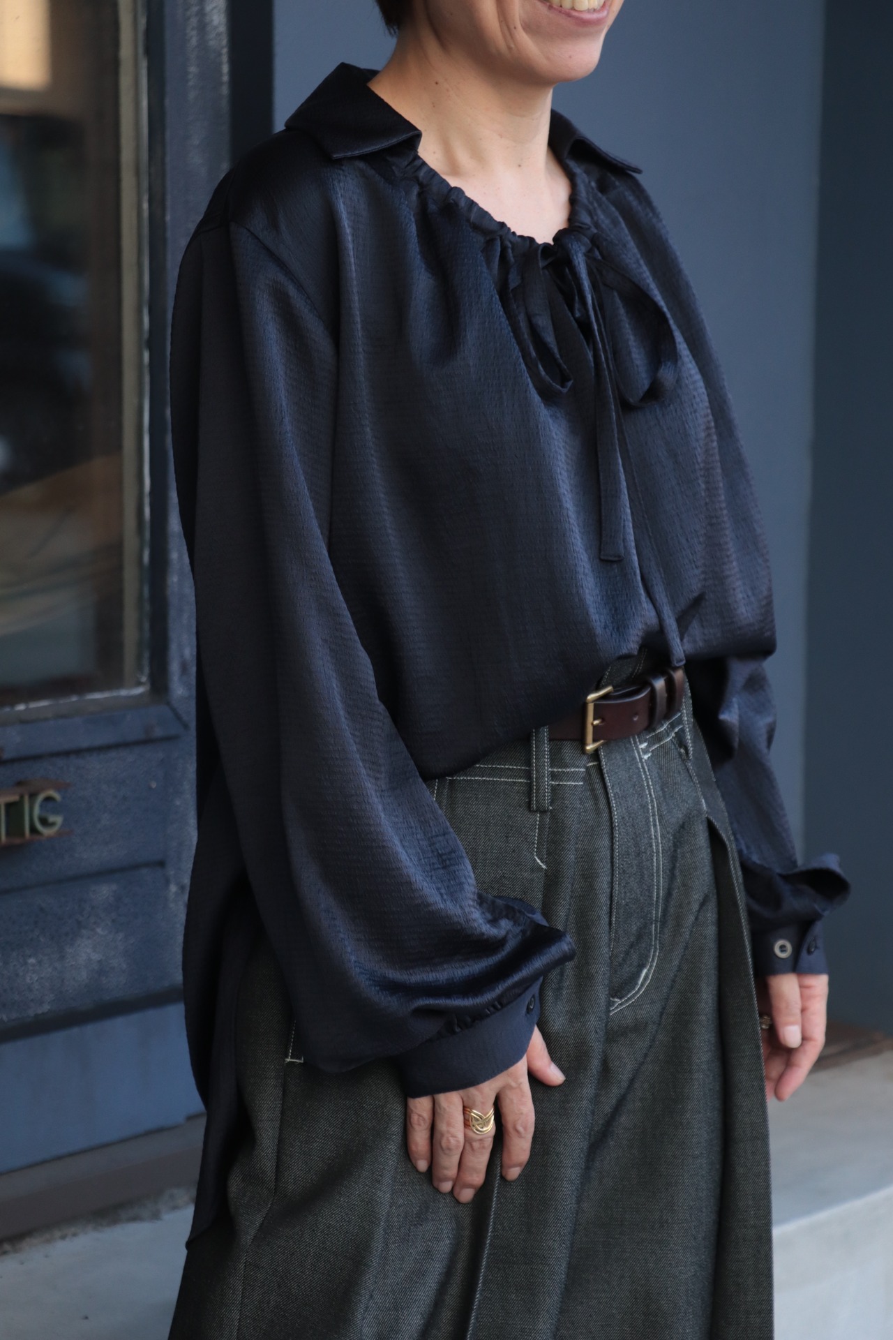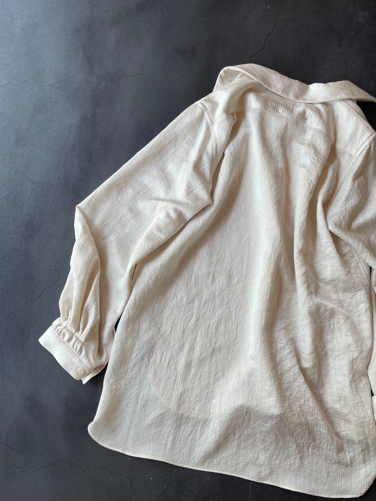 表情豊かなヴィンテージ調のシボ感を表現した軽量ブラウス素材で作られたブラウス。