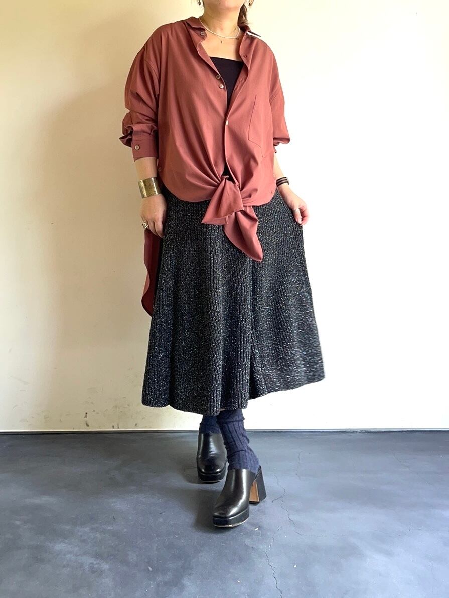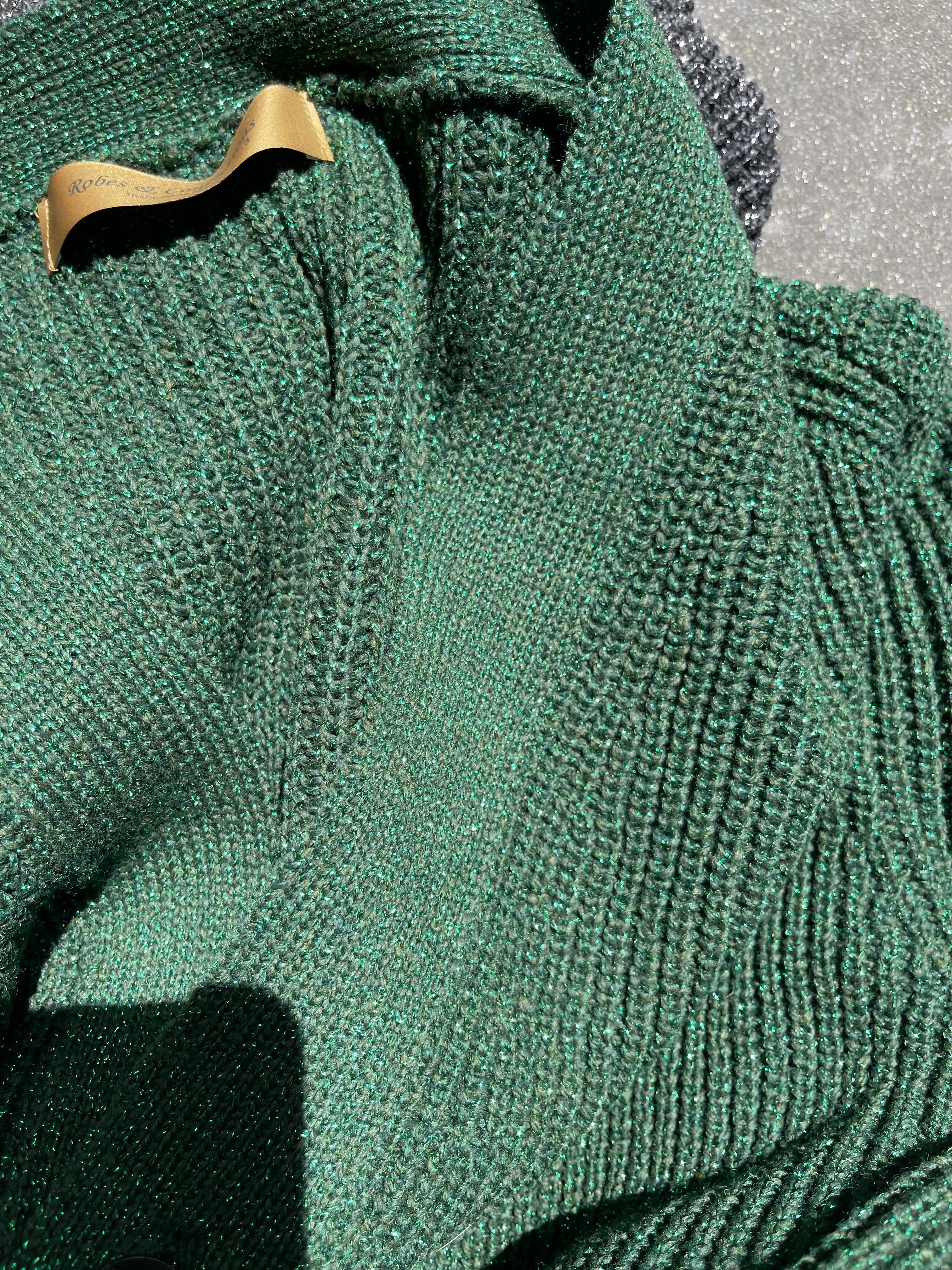 特殊な軽量毛糸に柔らかいメタリックヤーンを包み込む様に撚糸することで、軽さとボリューム、ラメの光沢を一度に感じることが出来るドレスニットシリーズ。