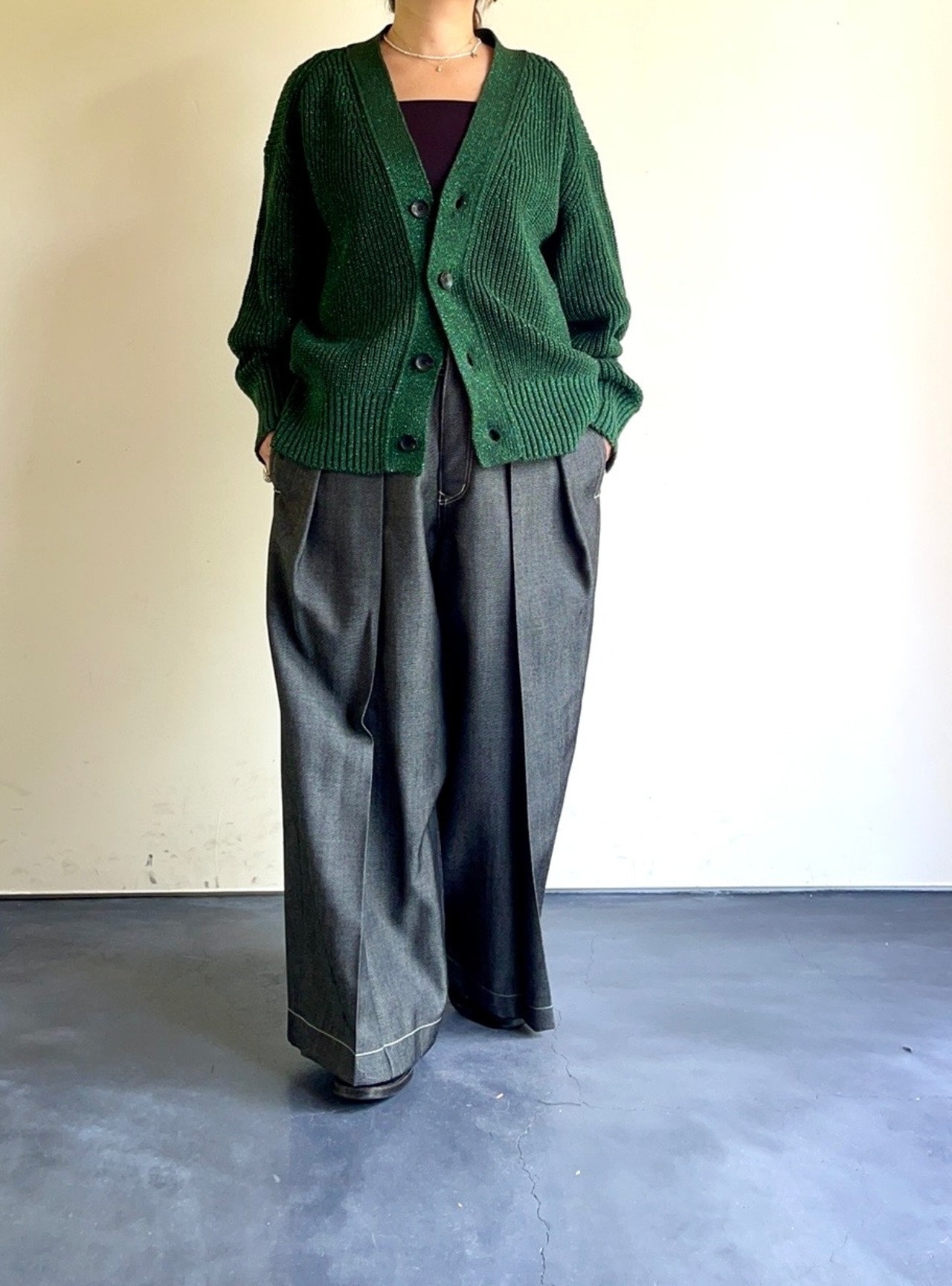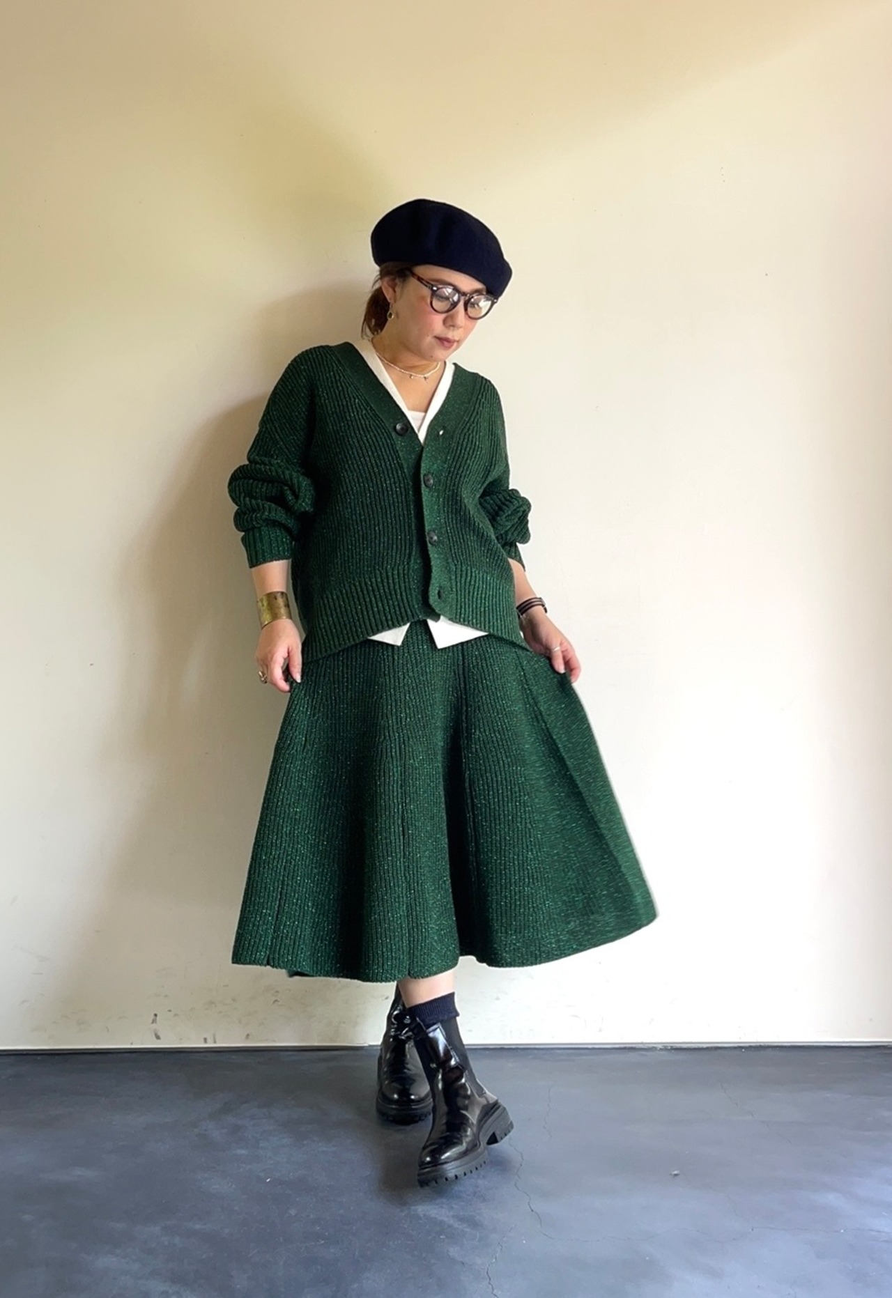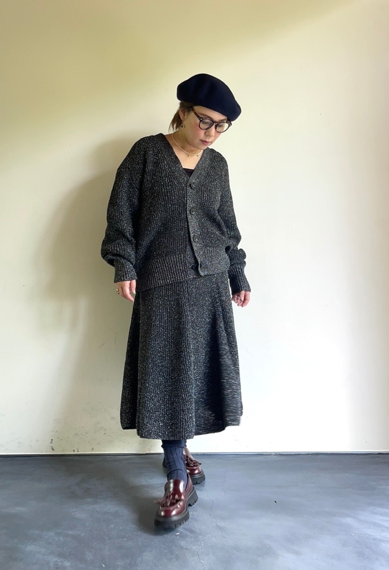 特殊な軽量毛糸に柔らかいメタリックヤーンを包み込む様に撚糸することで、軽さとボリューム、ラメの光沢を一度に感じることが出来るドレスニットシリーズ。