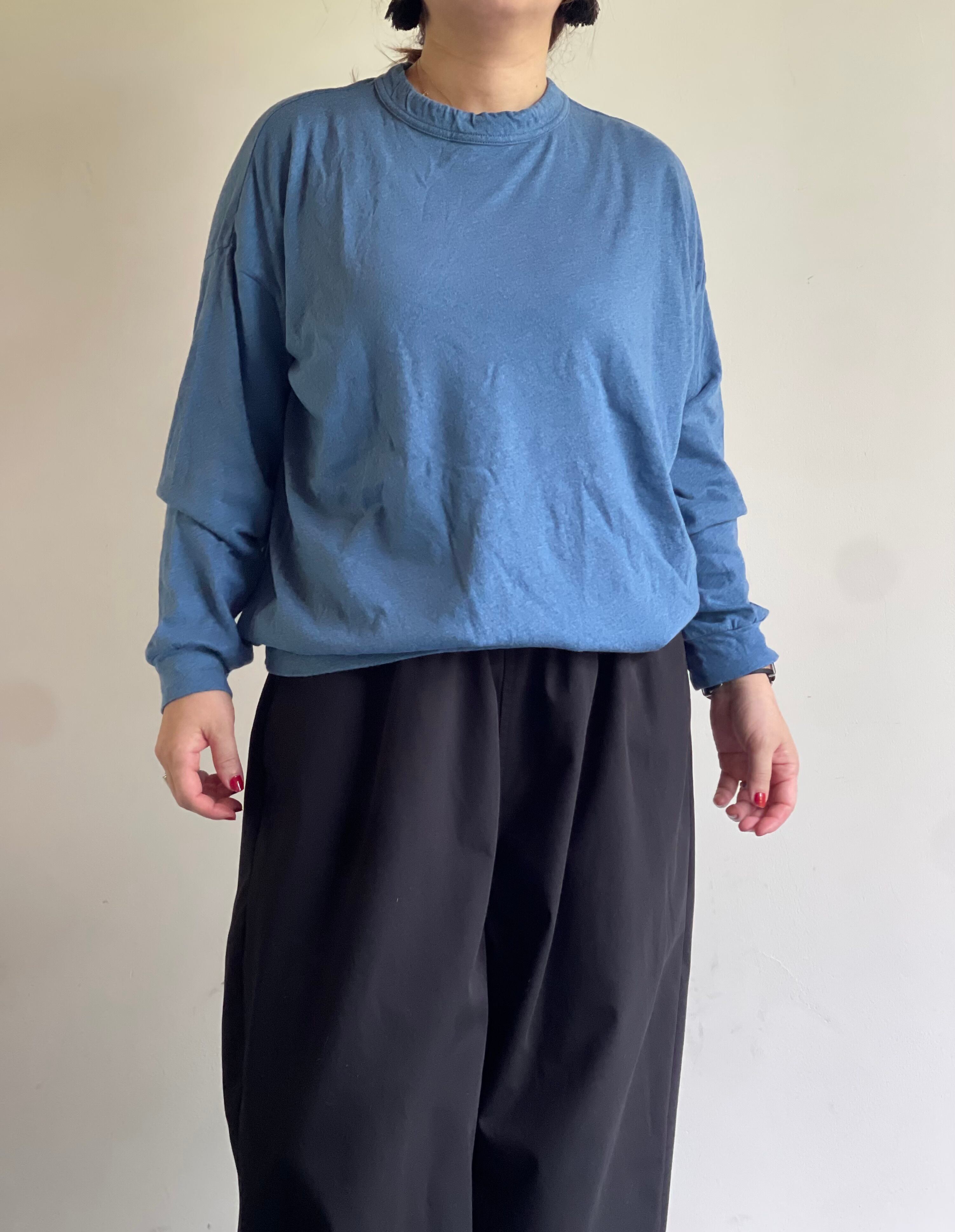 切り替え部分から下を内側に折り返してタックイン風に着ることもできます。