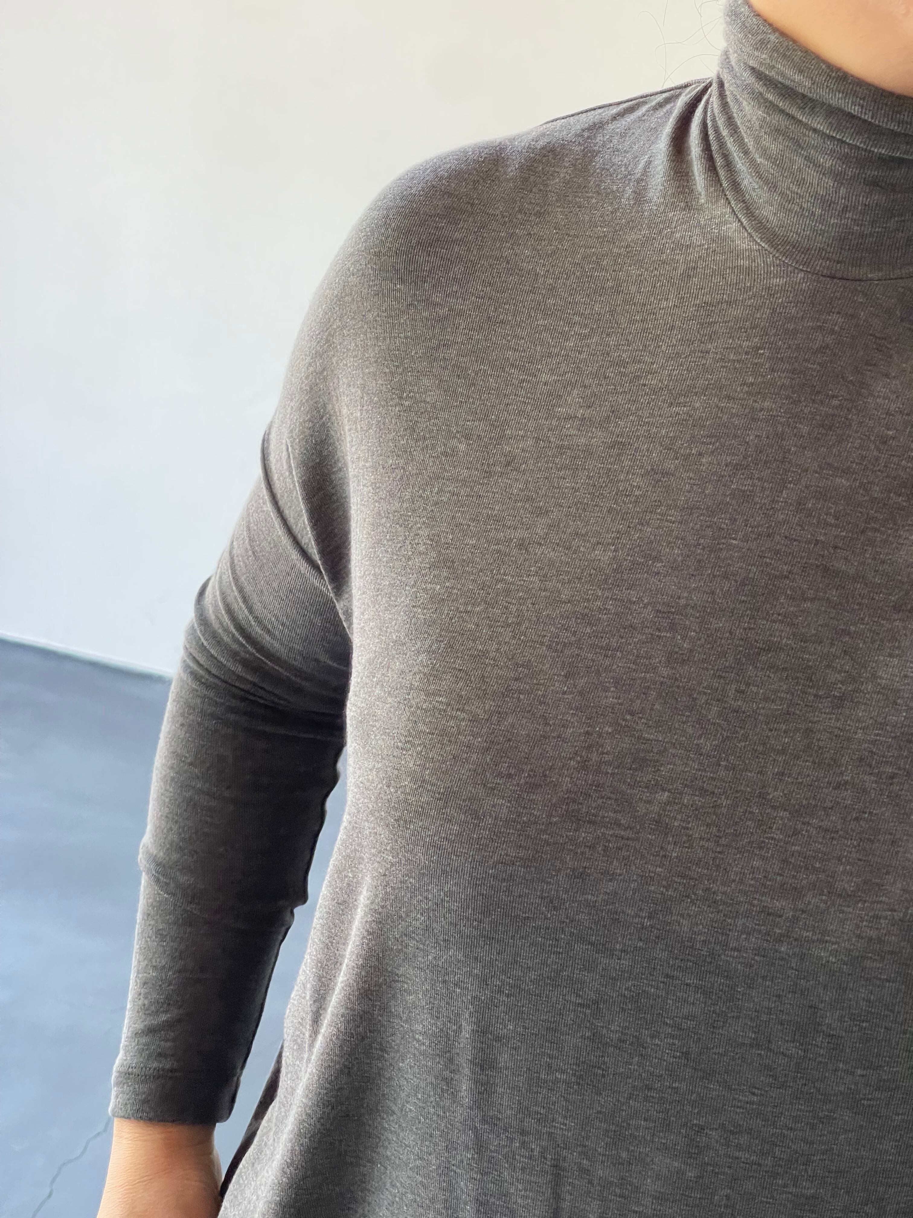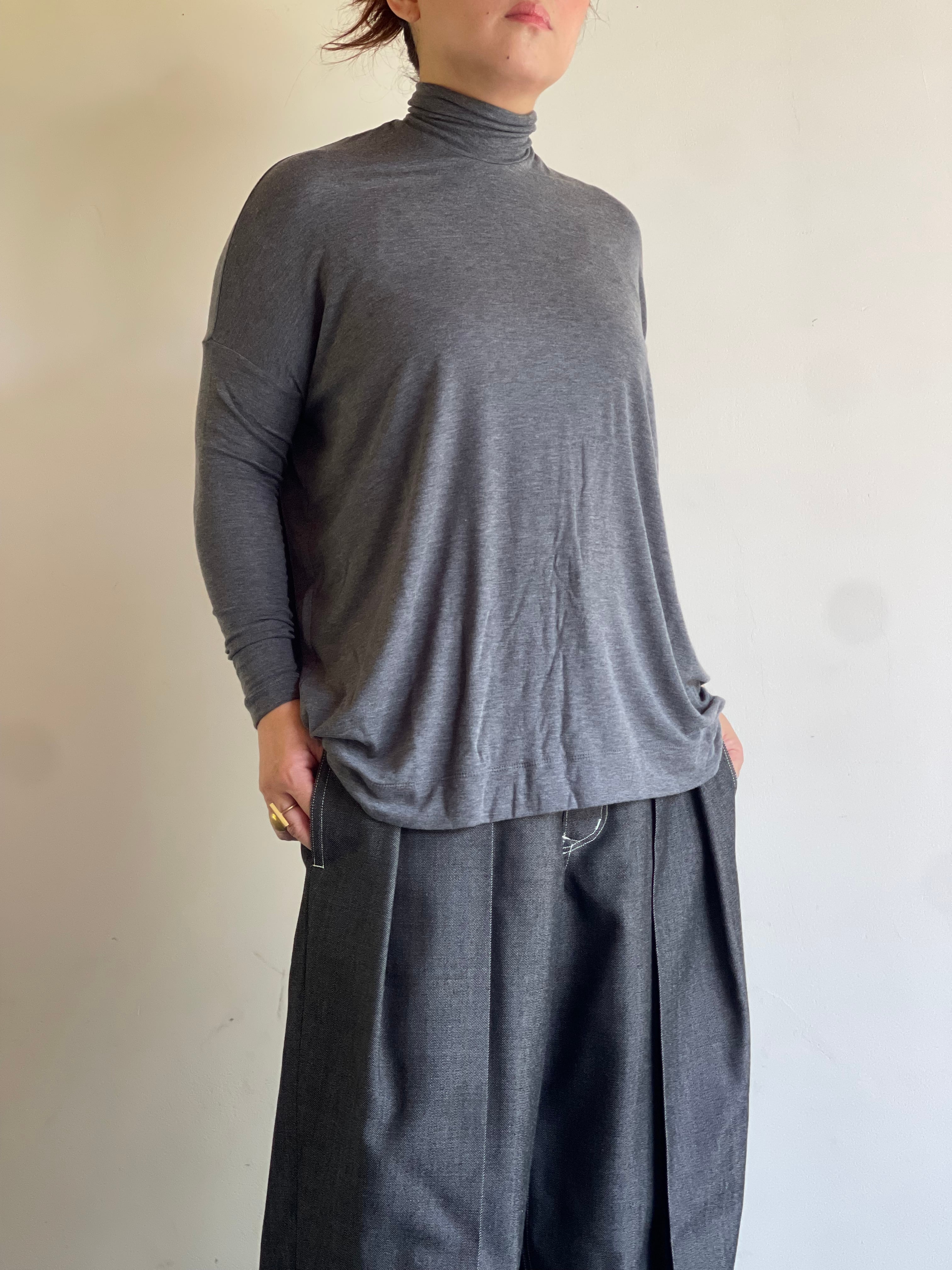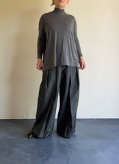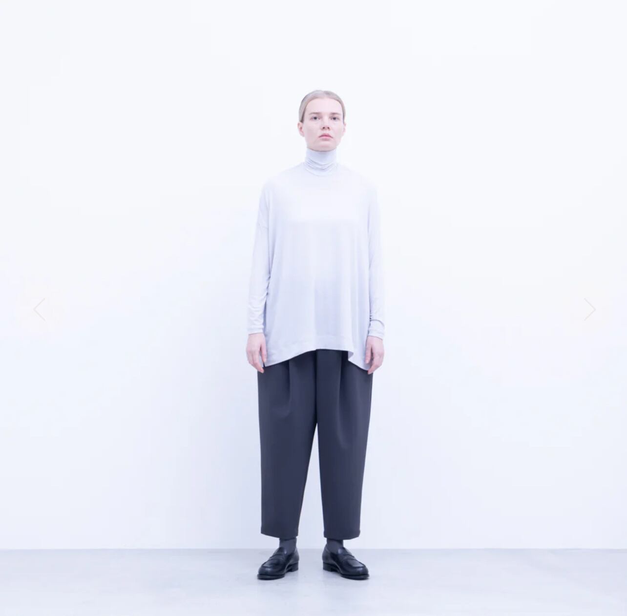 ストレッチが効くためタイトに使える生地ですが、あえてルーズな部分をつくることでゆったりとした雰囲気に仕上げています。