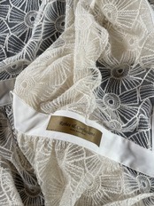 ナイロンのレース地にコットン糸で細やかな刺繍が施された本当に美しい生地を使用しています。